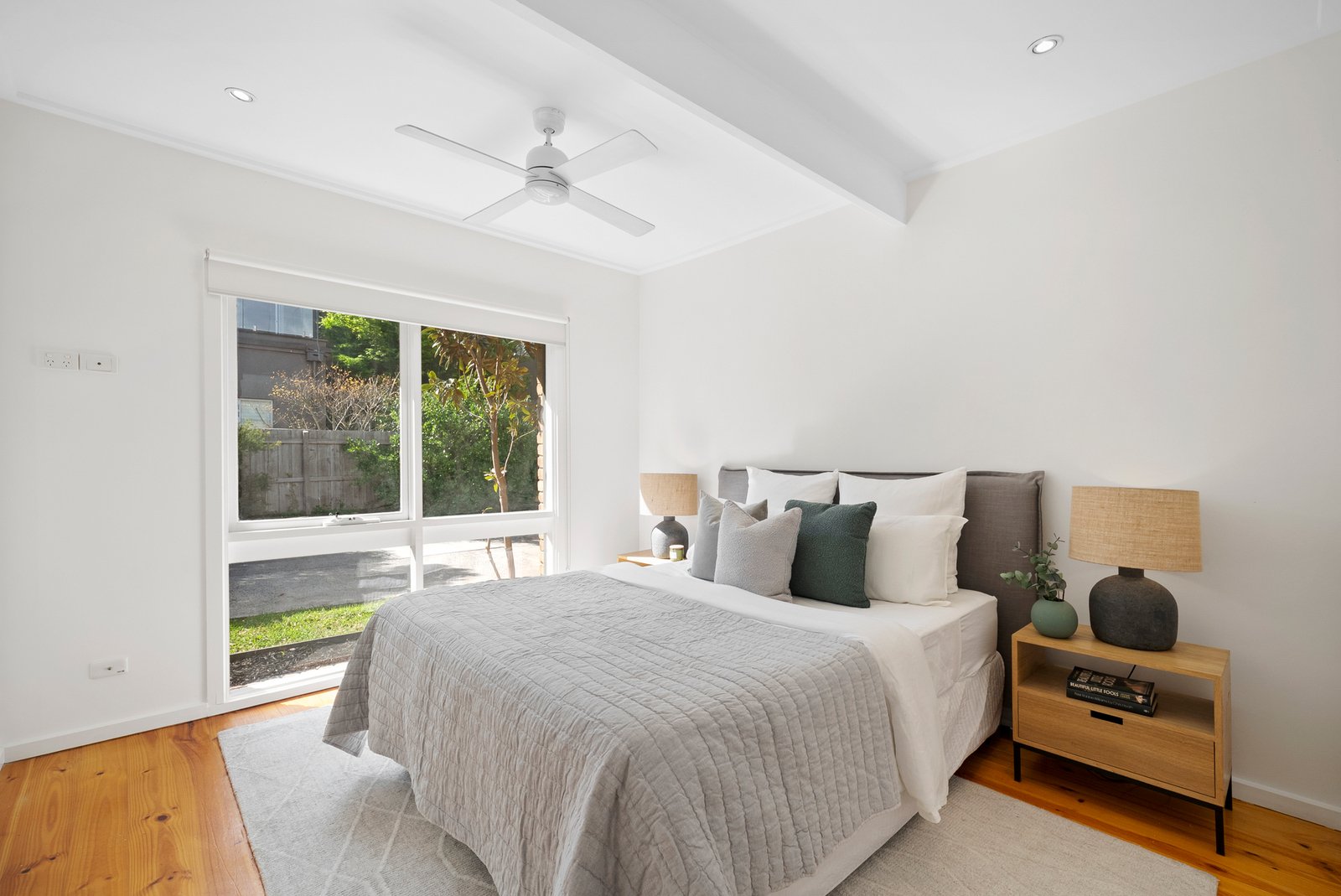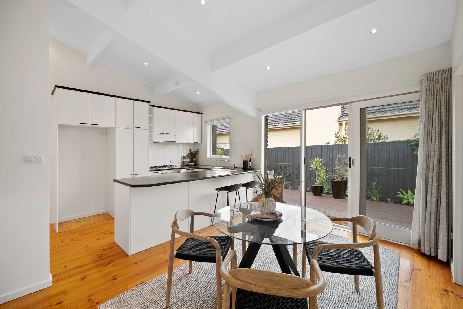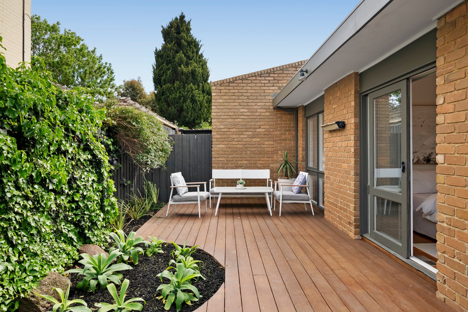 Lofty, light-filled and with mid-century modern style, this is where single-level living meets Sandringham life. Built to the scale and quality this blue-chip address deserves, this substantial three-bedroom, two-bathroom single-level townhouse rises above the rest with an expansive dual-living design characterised by soaring vaulted ceilings, walls of windows, and outlooks to entertainer’s garden at every turn.