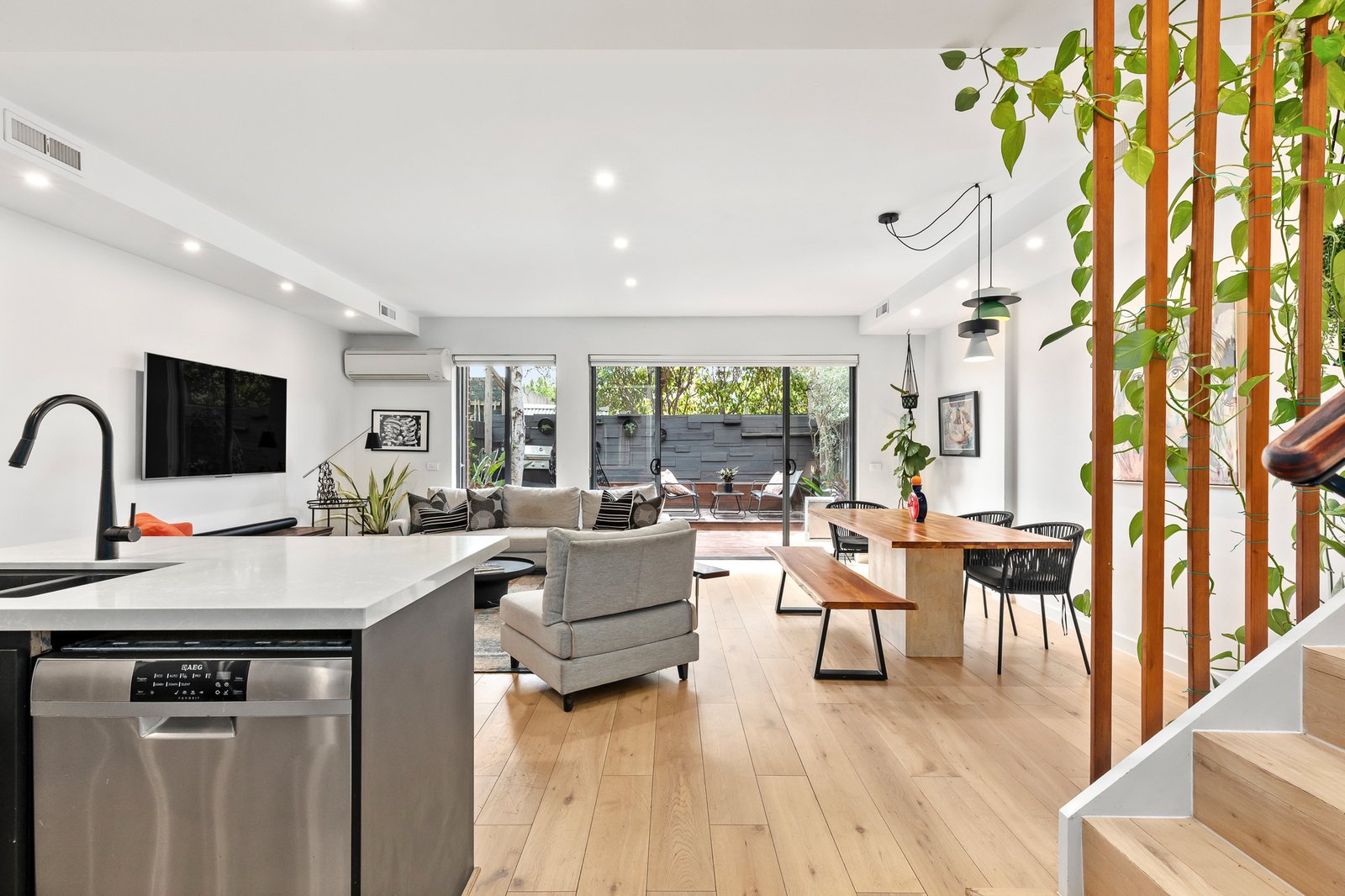 Privately nestled at the very rear of a contemporary boutique block, this fully renovated two storey townhouse delivers a compelling fusion of designer finishes, thoughtful functionality, and seamless indoor-outdoor living. Set back from the road, this fabulous home is perfectly placed between the cosmopolitan delights of St Kilda and Balaclava, and the village charm of Ripponlea. It offers the rare convenience of townhouse living with the privacy of a secluded haven, complete with a beautifully landscaped courtyard and alfresco area that complement the impressive interiors.