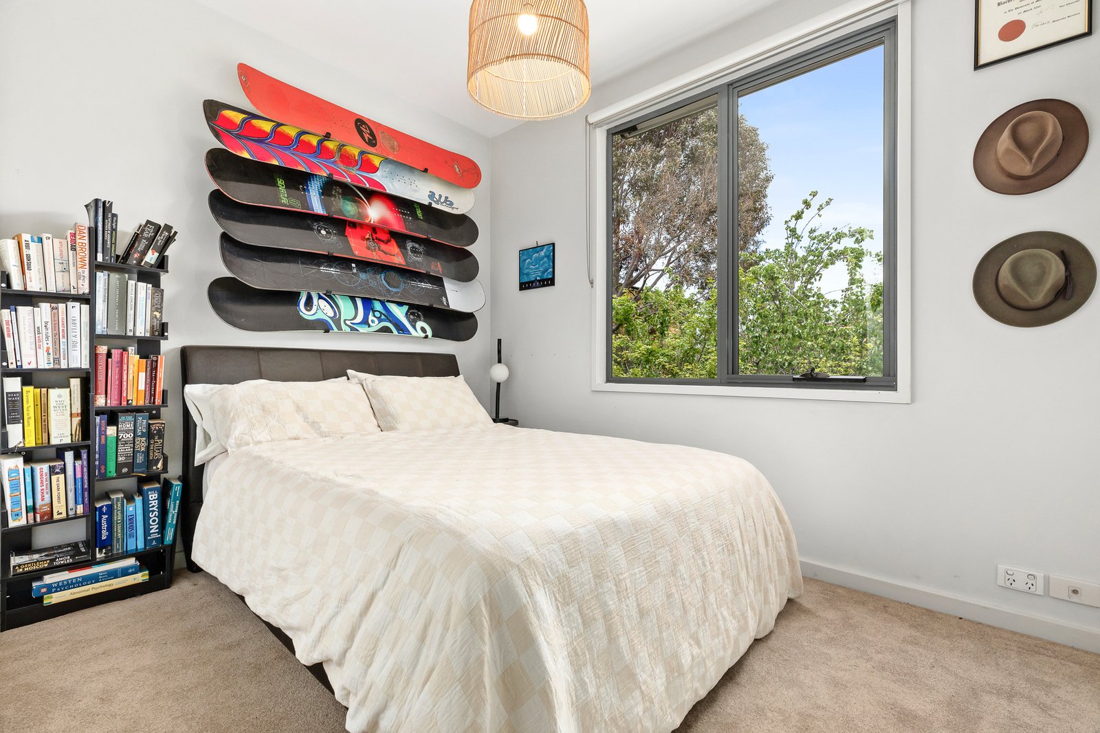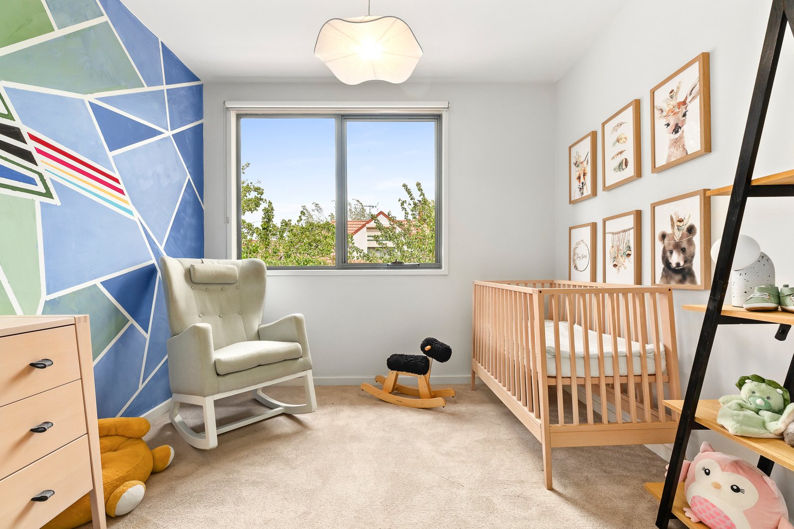 Upstairs, a second family room offers a versatile retreat, an ideal setting for a rumpus room, children’s play area, or a home office. The main bedroom delivers a serene hideaway for parents, complete with its own private balcony, walk-in robe, ensuite bathroom, and split-system heating/cooling. Two additional bedrooms are both appointed with built-in robes, and share a central bathroom with a shower-bath.