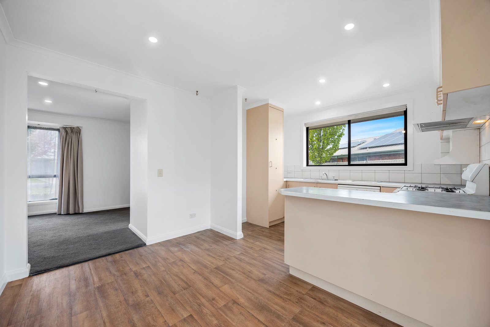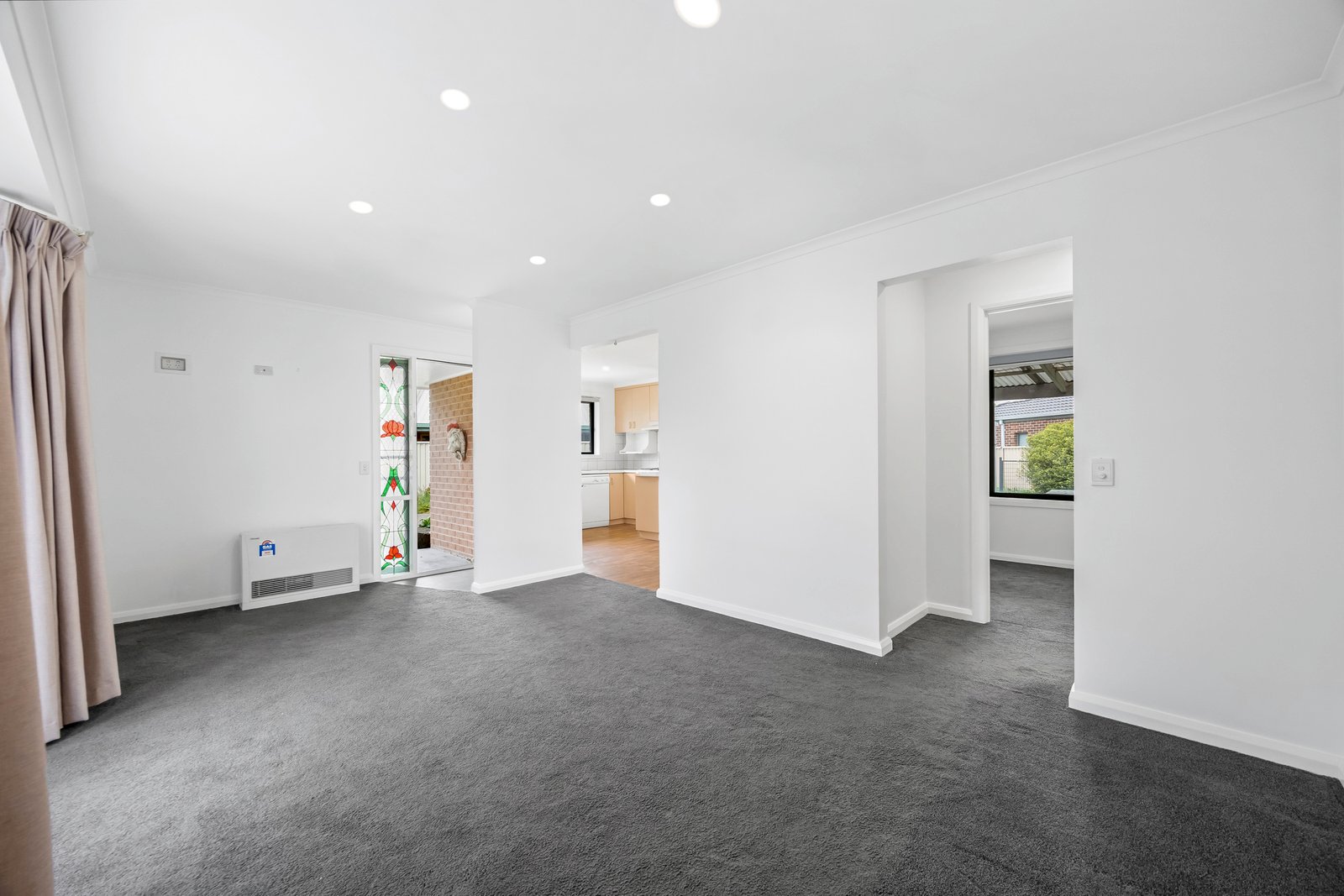 - Main living area with gas wall heater and split system