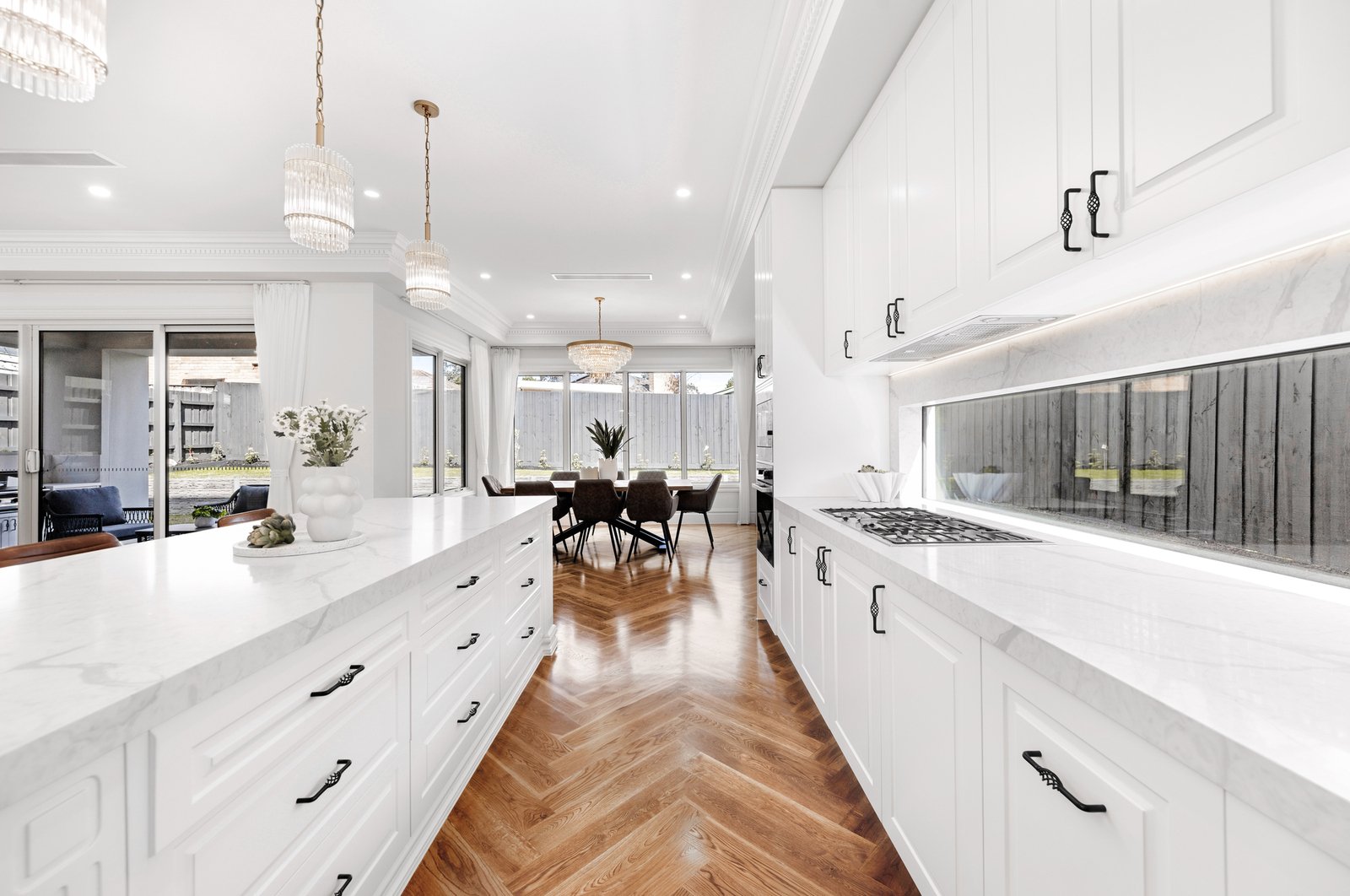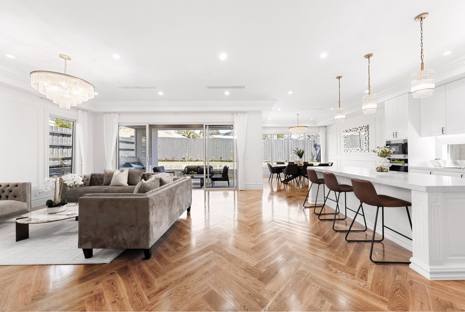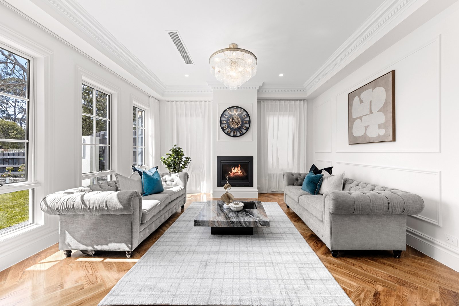 Privately set on a quiet street within the coveted Box Hill High School catchment, the home commands attention with its perfectly symmetrical façade, a striking introduction to the luxury that awaits inside. Soaring 3-metre ceilings, opulent marble finishes, and lavish crystal chandeliers establish interiors of breathtaking scale, while every detail reflects uncompromising craftsmanship and refined artistry.