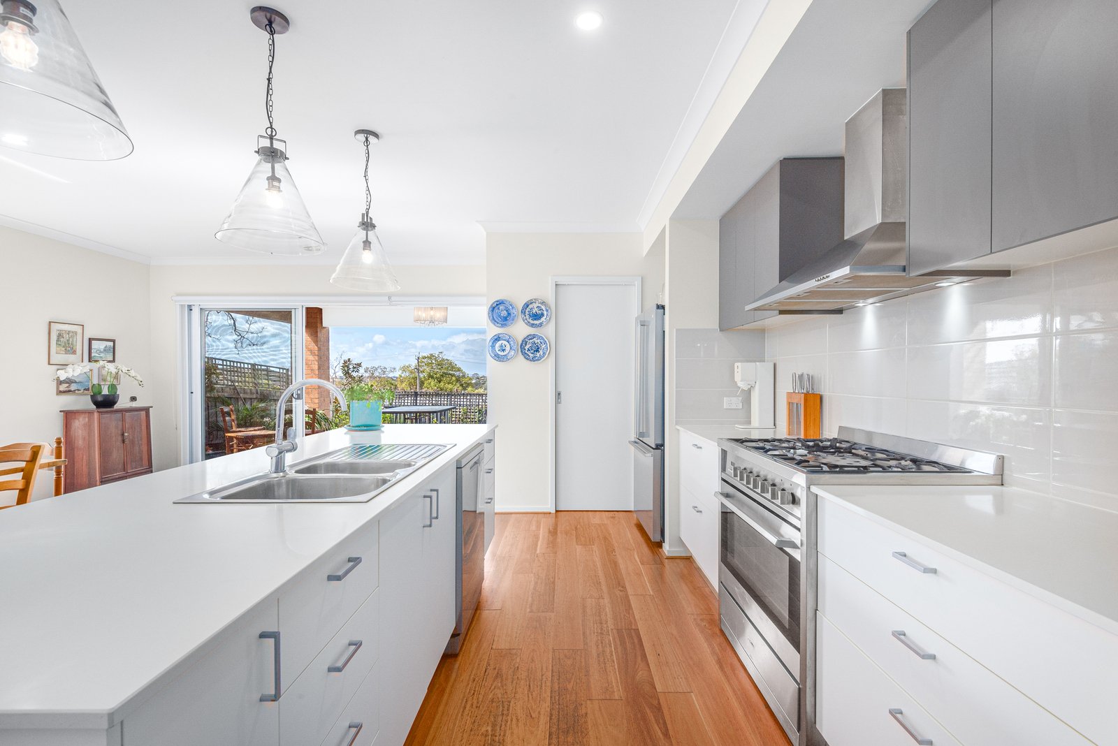 The stylish kitchen features a large island, sleek modern cabinetry, stone benchtops, a 900mm oven and cooktop, dishwasher, beautiful pendant lighting, and endless storage with a large walk-in pantry. Well positioned to overlook the dining space and alfresco, the design caters for easy everyday living and impressive entertaining.