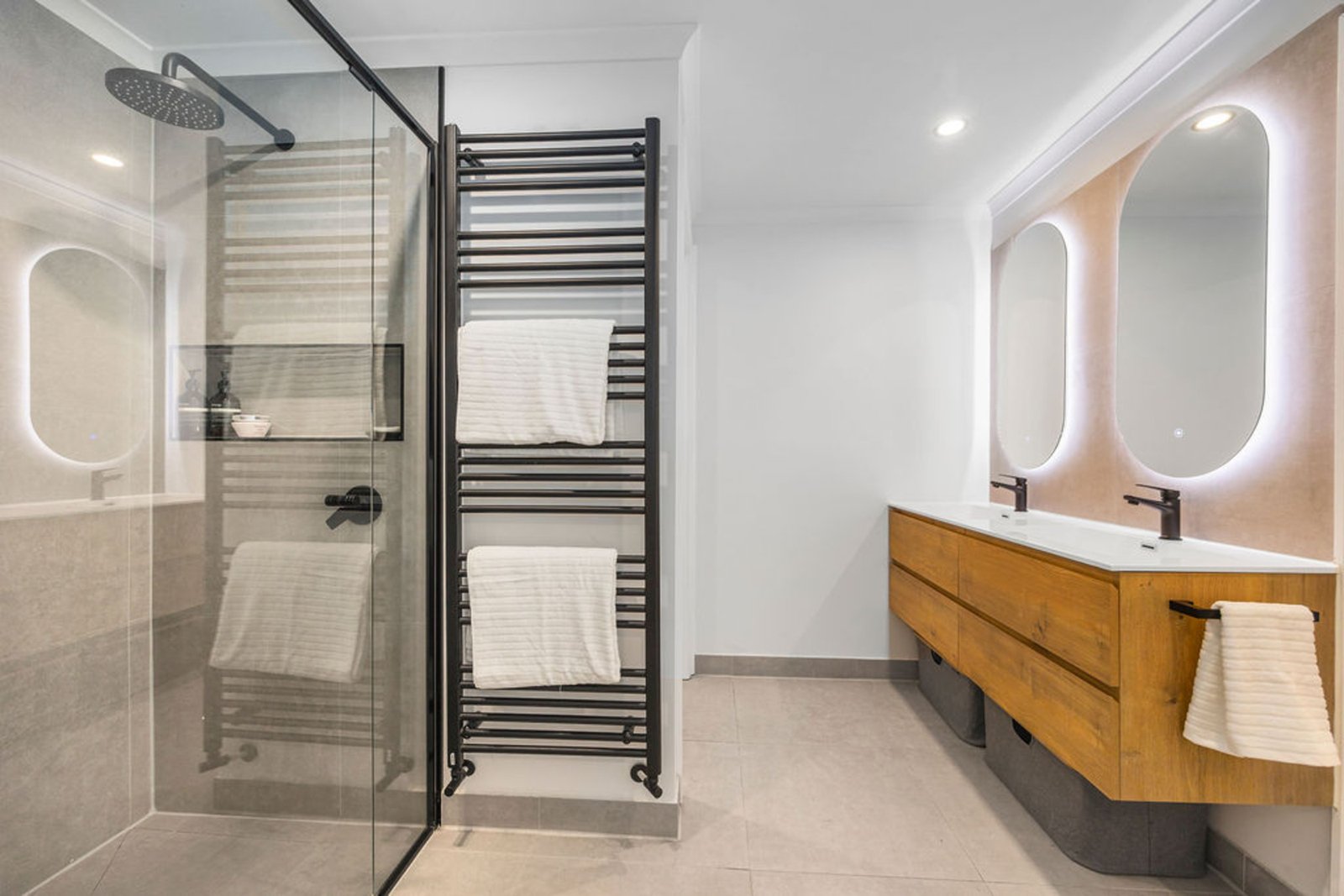 Catering to even the largest of families, the home boasts up to eight bedrooms plus multiple study and living zones. The enormous king-sized master suite upstairs is a true parents’ retreat, complete with a huge walk-in robe, powder area, ensuite with heated floors, double vanity, double shower, heated towel rails, and a gas log fire. Four additional bedrooms upstairs, three of which include built-in robes and one offering a walk-in robe and ensuite-like convenience. Downstairs, you’ll find another three or four bedrooms, all generous in size, serviced by a spacious main bathroom.