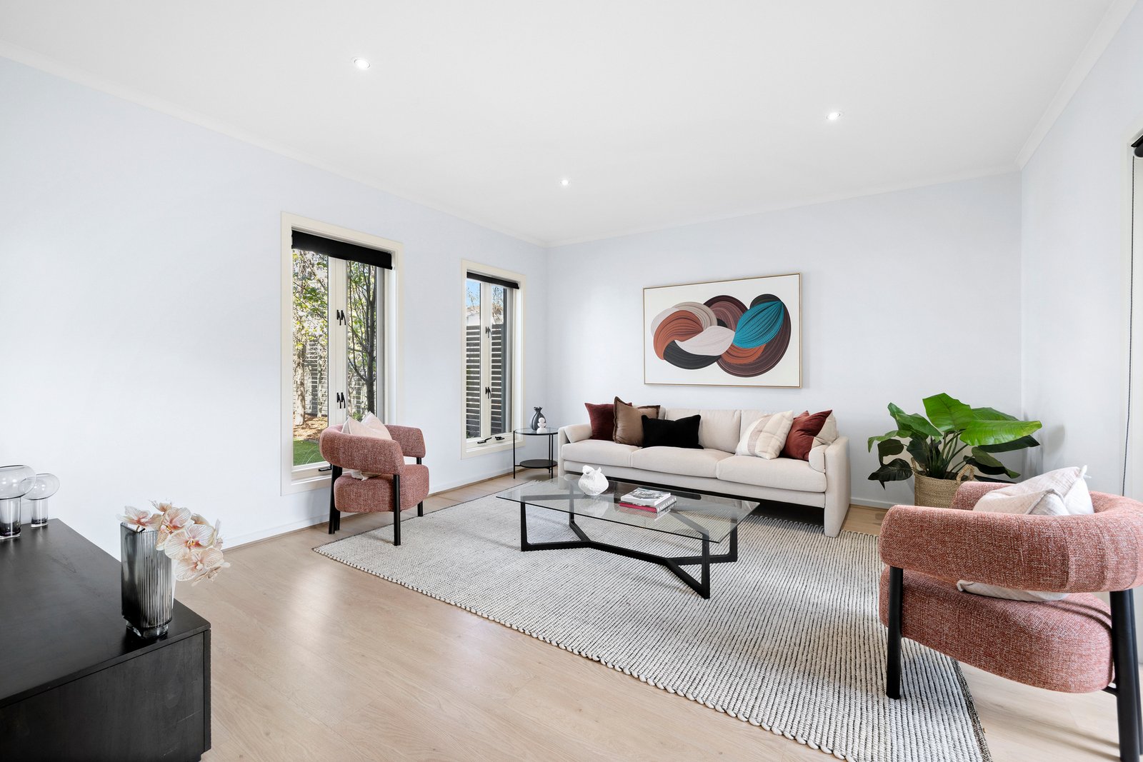 The front of just three on the block, and blessed with a sundrenched northerly aspect, the home features a welcoming lounge, separate dining area and well-equipped kitchen with quality appliances and handy breakfast bar for relaxed family meals.