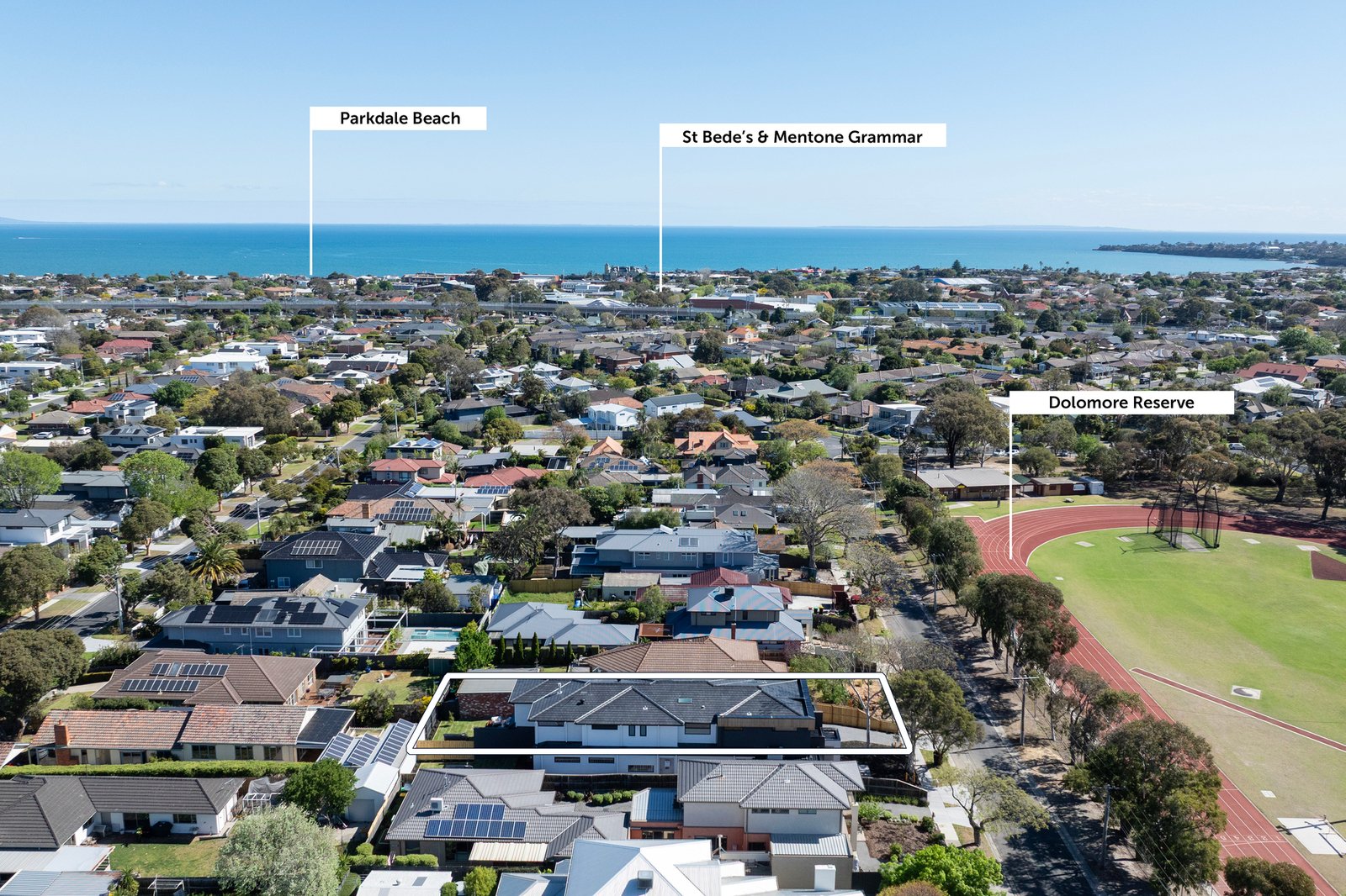 Opposite the open green expanses of Dolomore Reserve, this prized address is just moments from Mentone village & station, a choice of elite private & independent schooling options and both Mentone and St Patrick’s primary schools and the bay. It is also in the sought-after catchment zones for Mentone Girls’ and Parkdale secondary colleges.