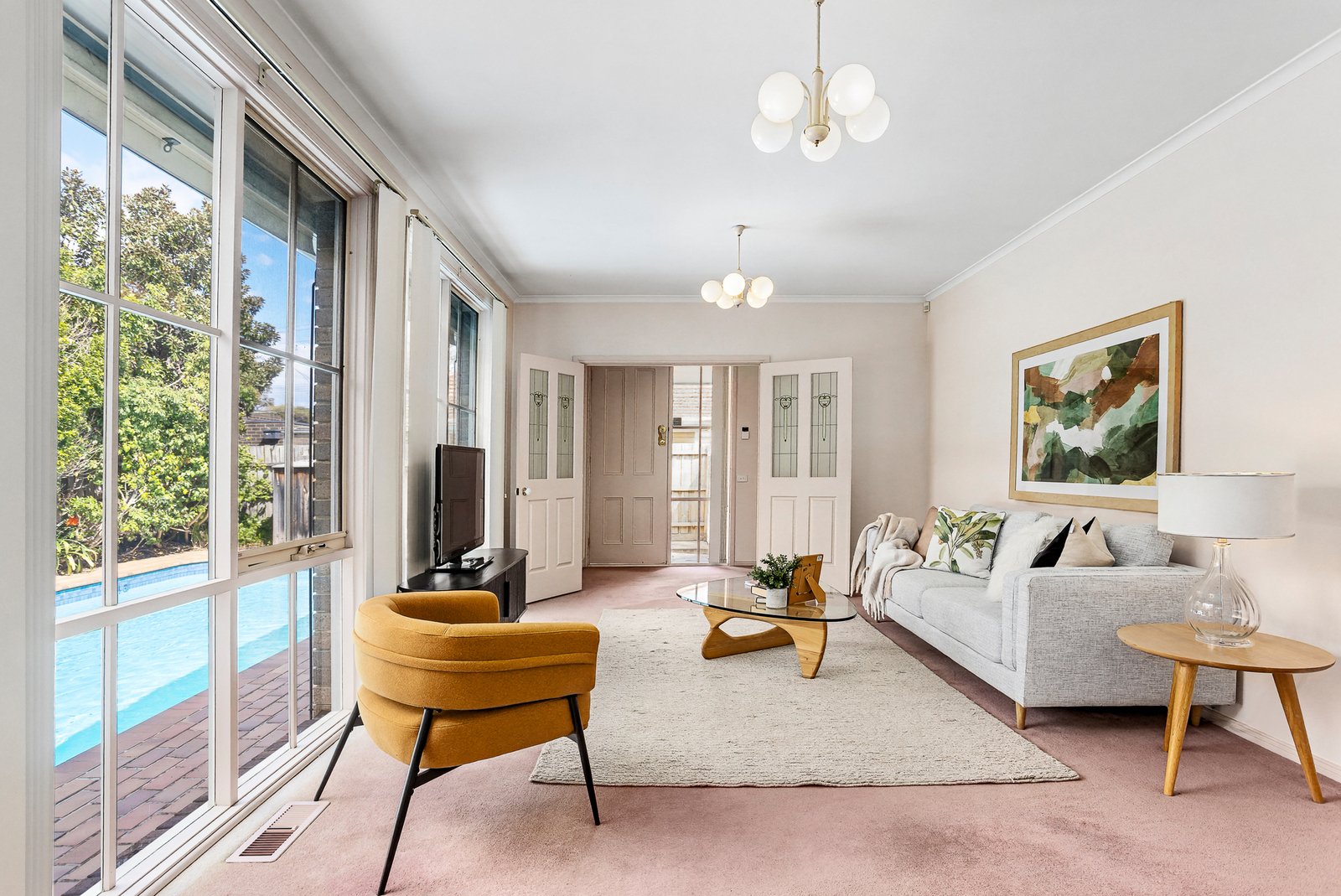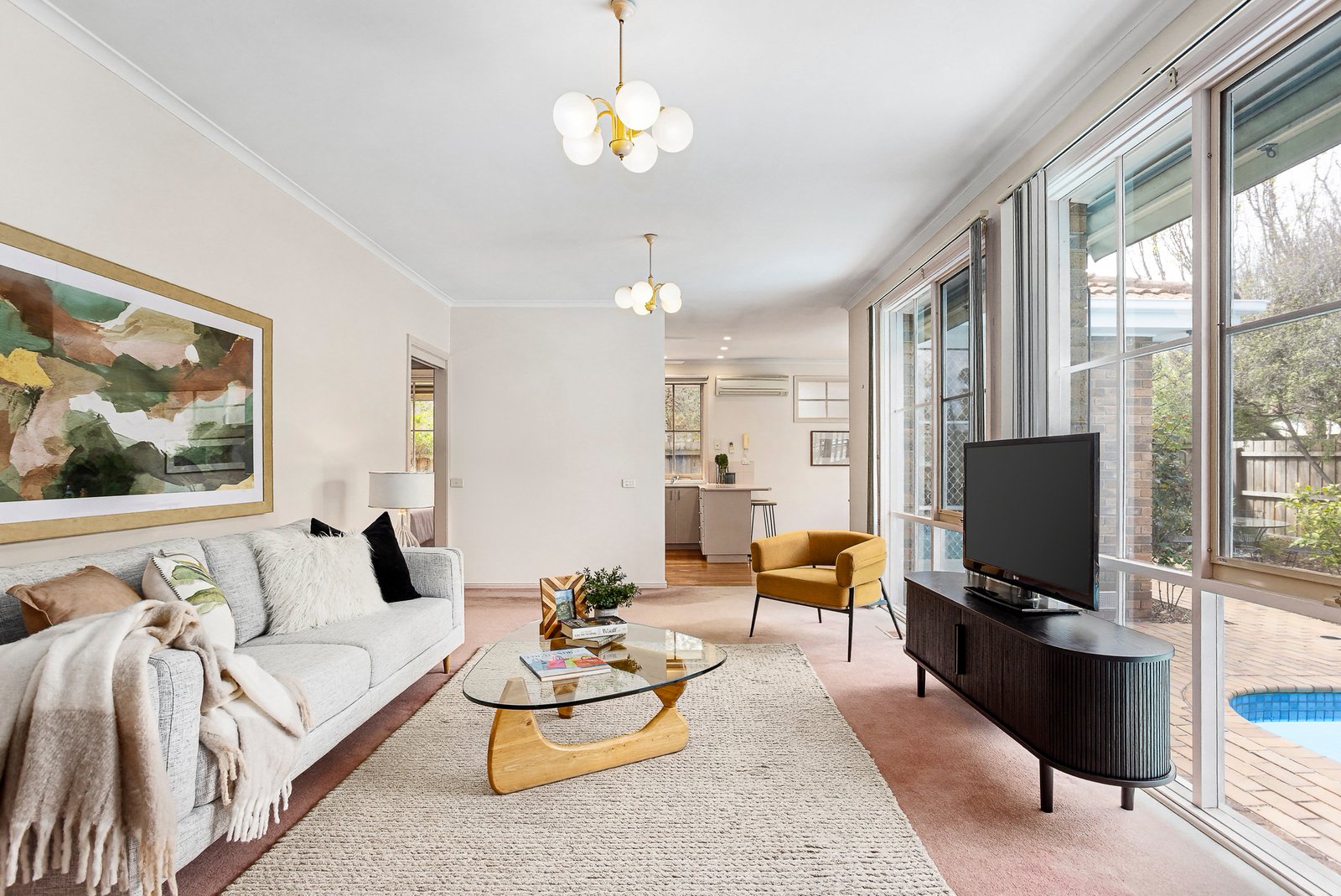 Beautifully maintained by the one owner for over 30 years, the home’s light-filled interiors capture garden and pool views through broad picture windows, creating a wonderful sense of calm and connection. A generous living room flows to a bright dining area and an open-plan kitchen featuring a gas cooktop, dishwasher and breakfast bar, while sliding glass doors invite seamless indoor-outdoor entertaining beside the pool.