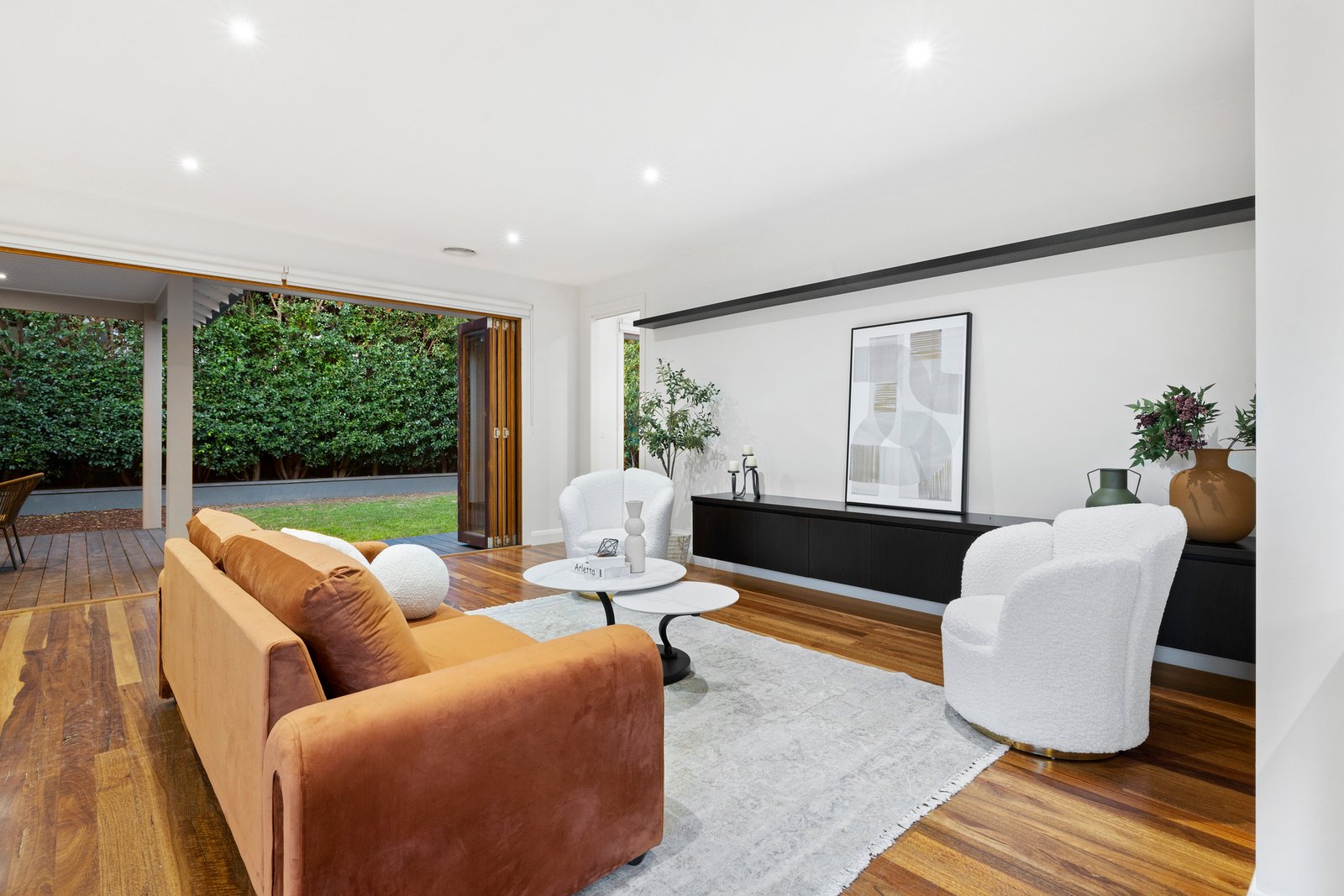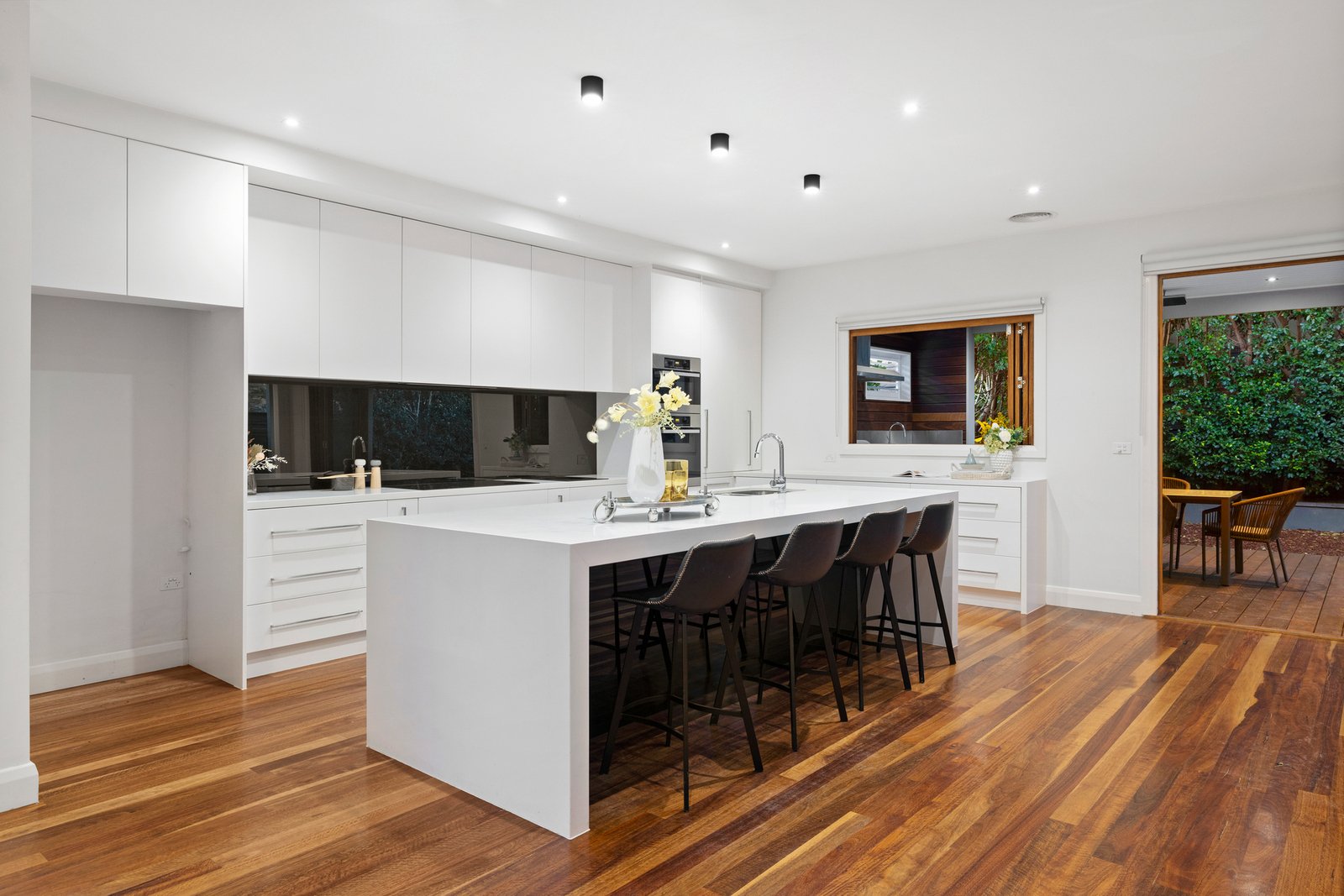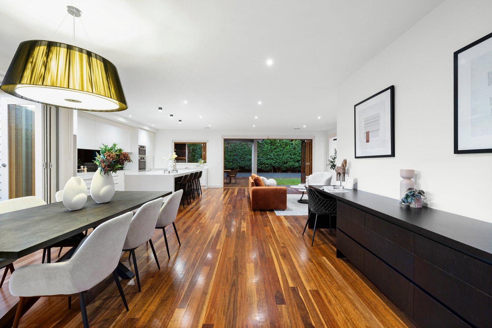 4 bedrooms (main with fully-tiled ensuite) and chic bathroom create an indulgent experience for family living, whilst ducted heating/AC, guest powder room, video intercom, plantation shutters, auto entry gate, good-sized hedged rear garden, water tanks, single garage plus storage and 2 off street car spaces add further lifestyle luxury.