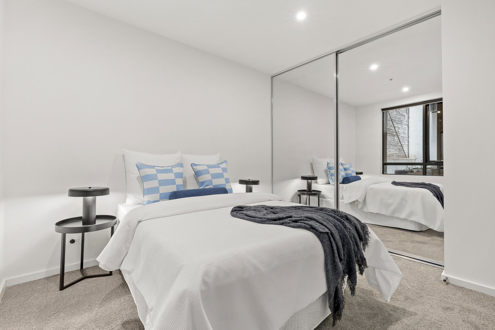 Located within the SJB Architects-designed 181 Fitzroy Street, this sunlit residence is a showcase of style and modern sophistication, an open-plan living/dining area flows seamlessly from gourmet kitchen, while two generous bedrooms-each with robes-ensure comfort. The master enjoys a luxurious ensuite, and a stylish main bathroom complements the rest of the apartment. A spacious balcony with views of the St Kilda Cricket Ground and the dynamic Melbourne skyline adds an extra layer of appeal.