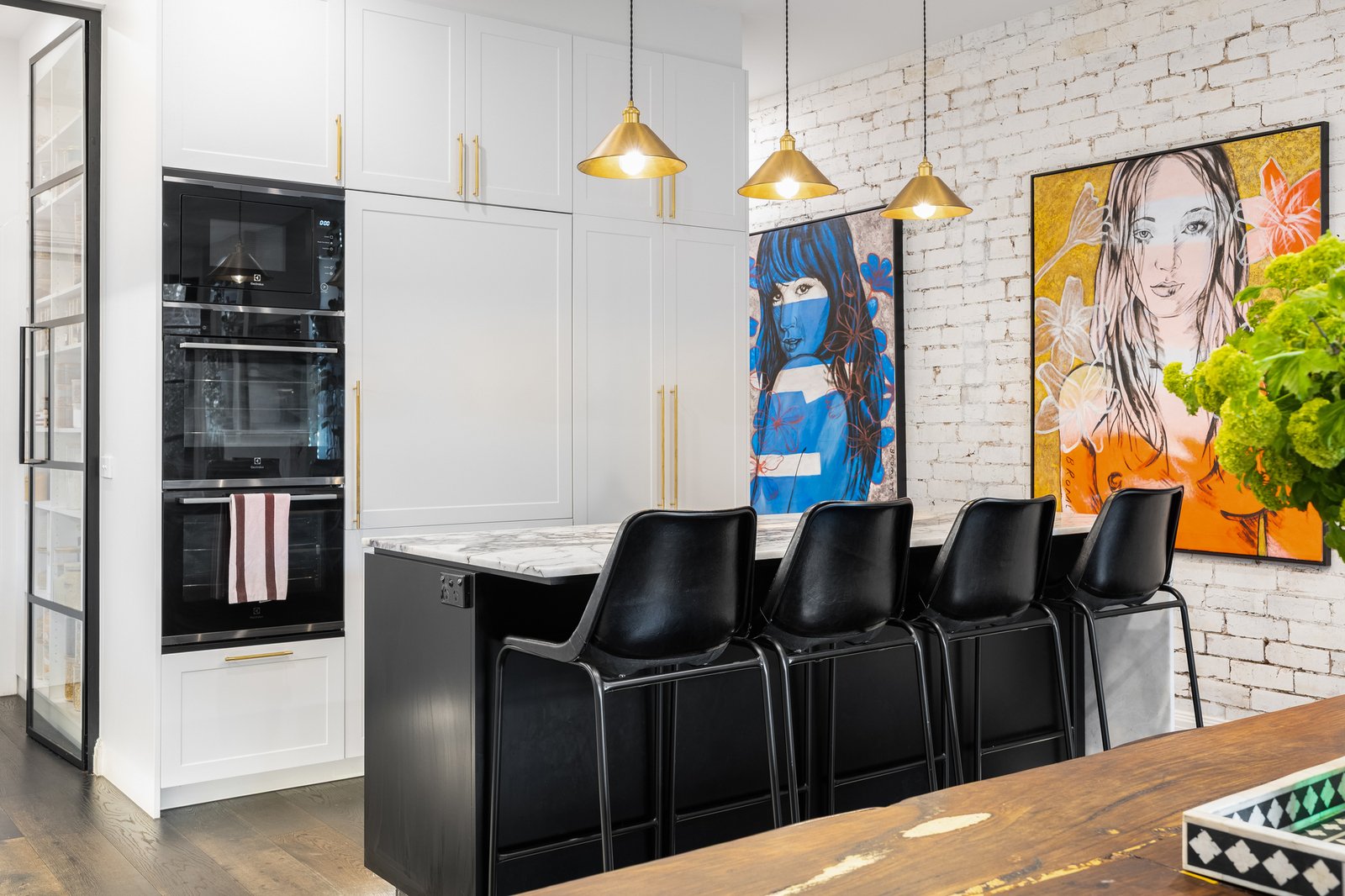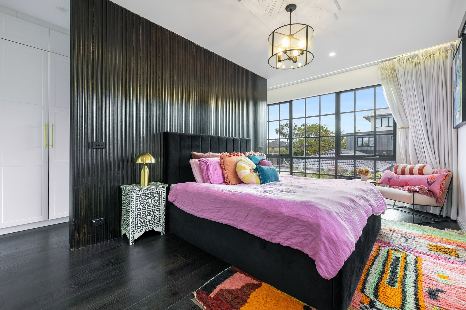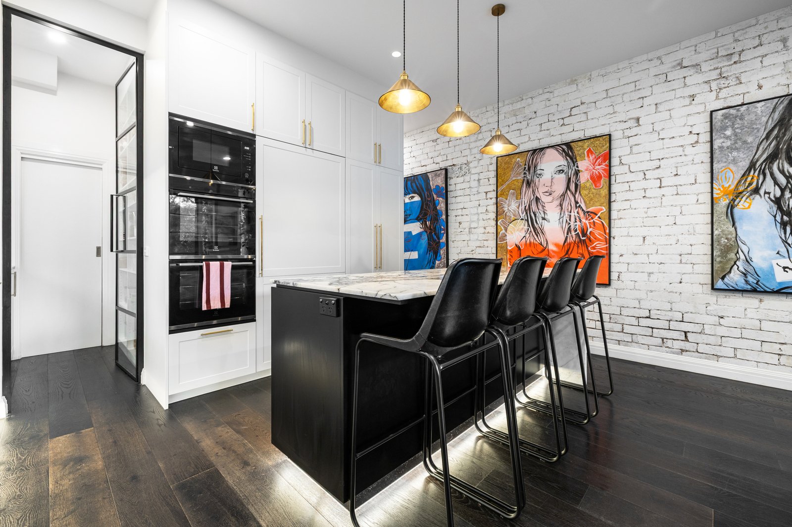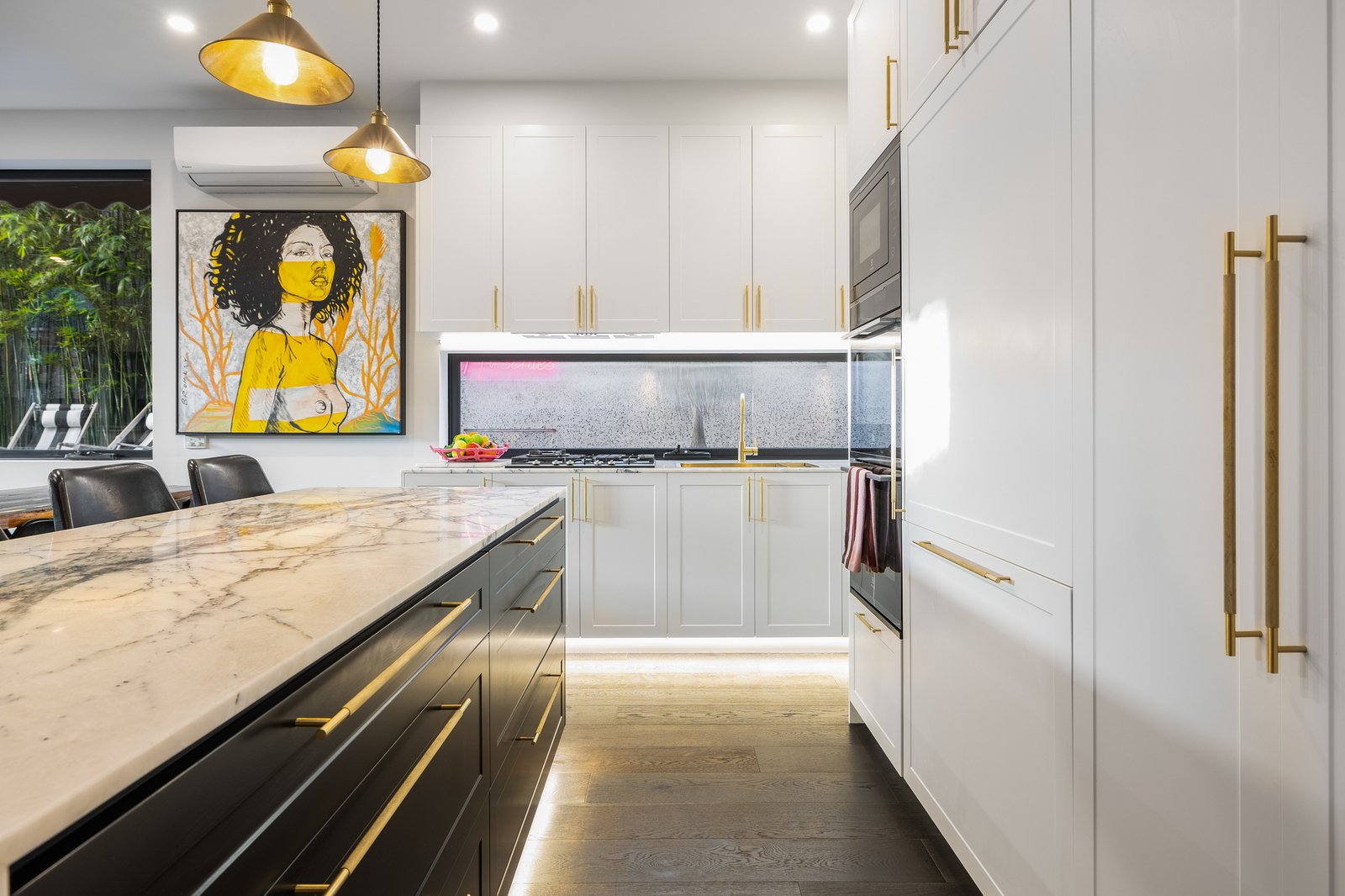 Showcasing exceptional craftsmanship and contemporary style, the home features an open-plan design anchored by a stunning New York marble kitchen with twin electric ovens, gas cooktop, Fisher & Paykel double-drawer dishwasher, integrated fridge/freezer, and a fully equipped butler’s pantry with a second sink.
