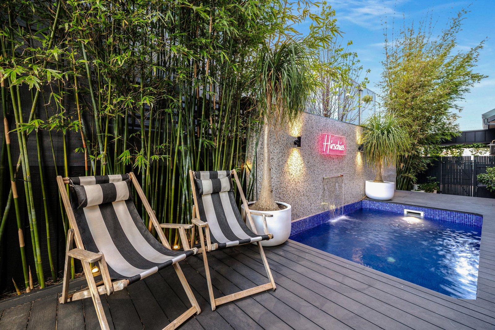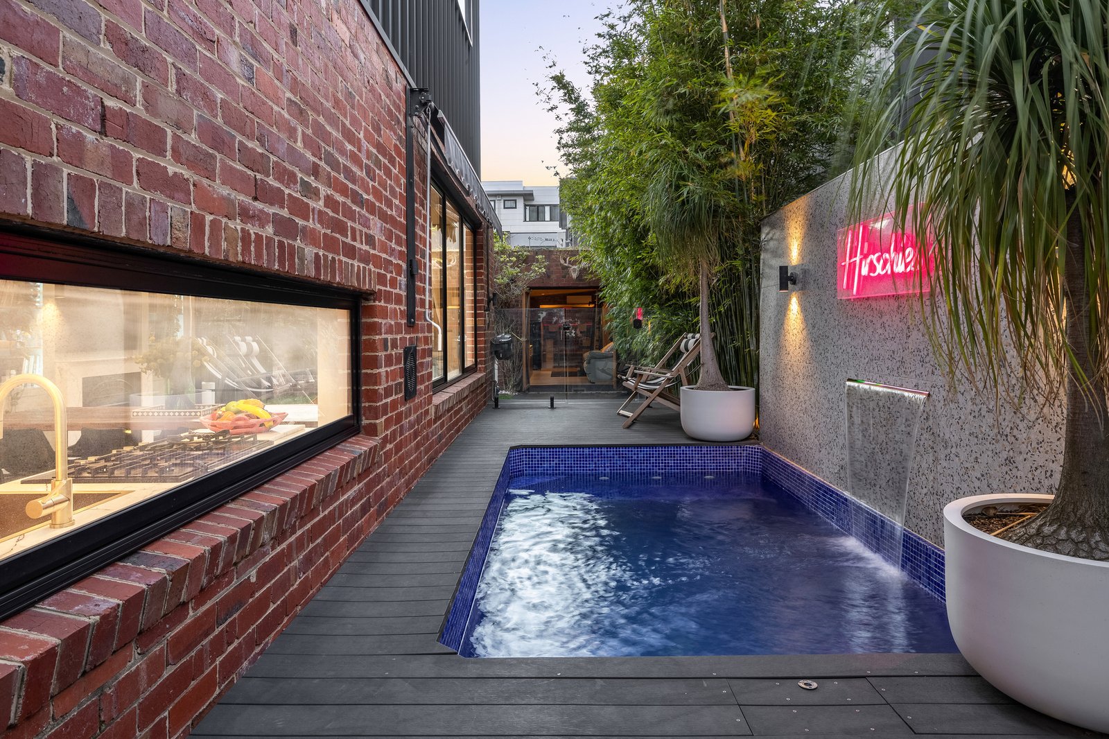 The home’s luxury continues outdoors, with eco decking wrapping around a sparkling gas heated saltwater pool, outdoor shower and a lush, low-maintenance garden. Entertain in style in the outdoor kitchen retreat or relax in the polished-concrete bungalow, perfect as a man cave, home gym, or guest quarters.