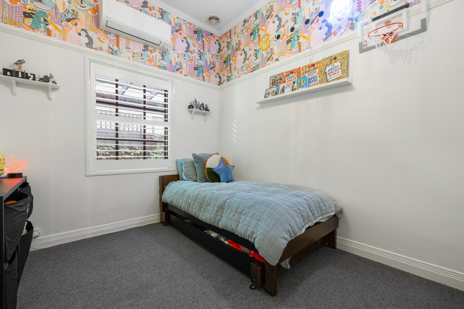 Engineered timber flooring, double-brick and brick veneer construction, and ducted heating throughout ensure quality and comfort. Each room is fitted with its own split-system reverse cycle unit, complemented by a marble-framed gas fireplace and skylit living zones that enhance natural light.