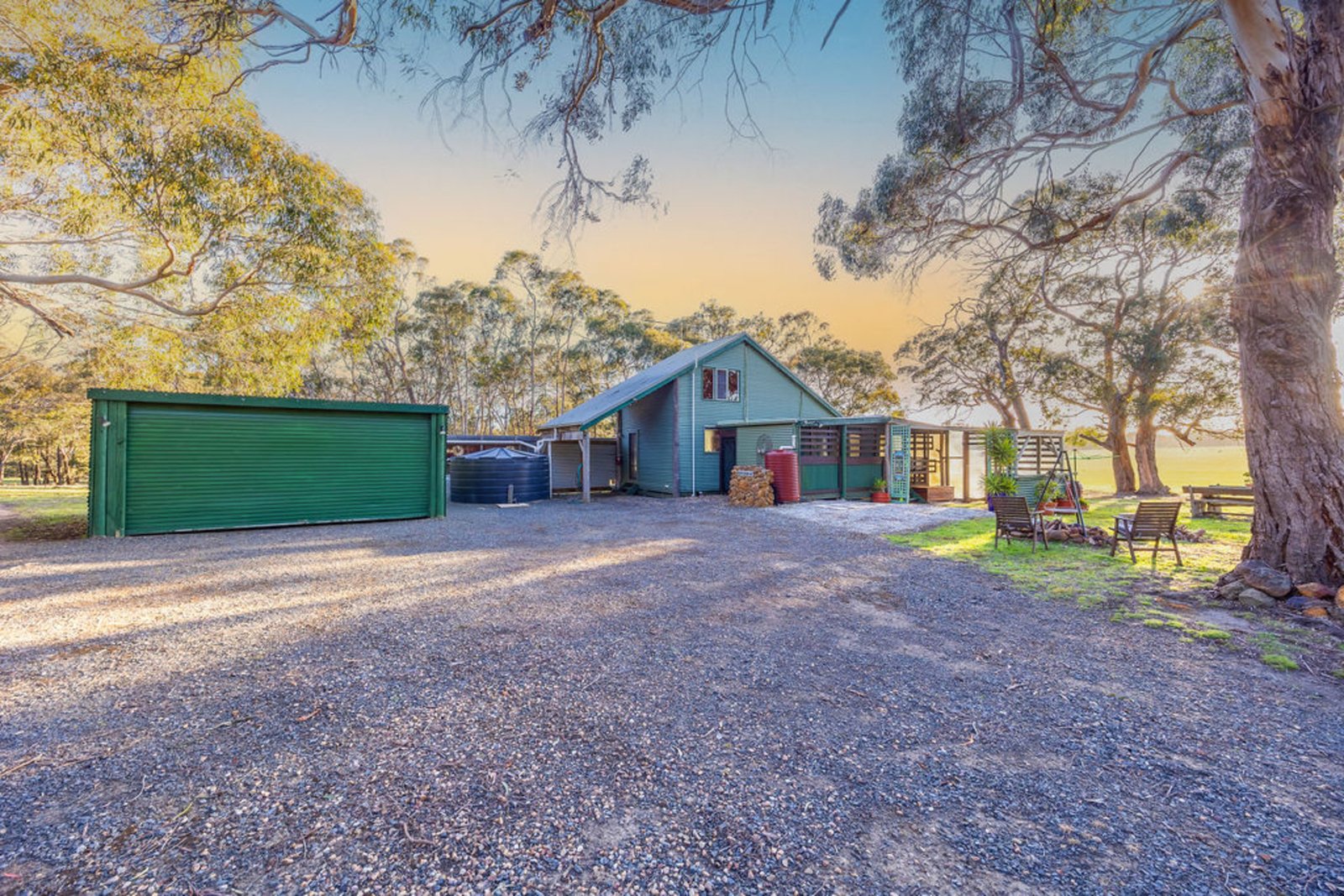 The current one-bedroom home is cosy and comfortable, featuring a brand-new split system, window unit and a natural wood heater for those crisp country evenings. Shedding is well set up with power, a 40ft container also connected to power, a double garage with electric roller doors, and a rustic wood shed for firewood storage.
