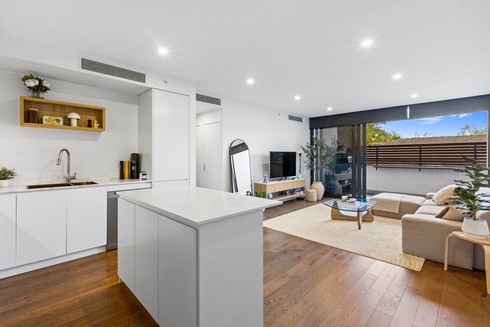Including a secure basement car space including plenty of visitors parking and storage cage, central heating/cooling, American Oak floors, Euro laundry, a/v intercom, tinted double glazing and a six-star energy rating.