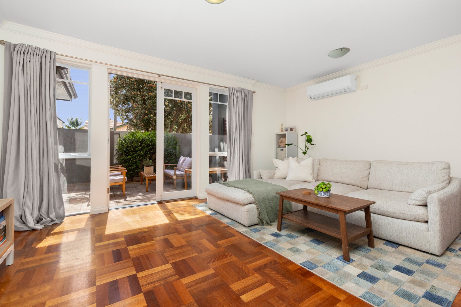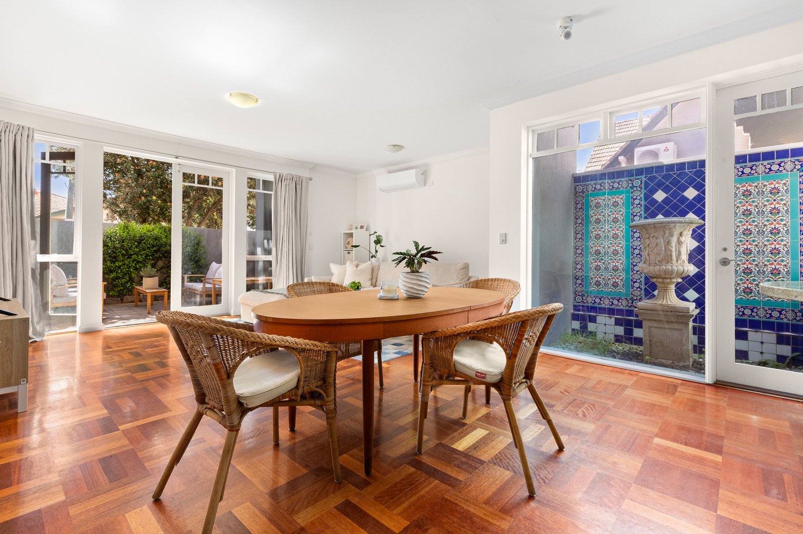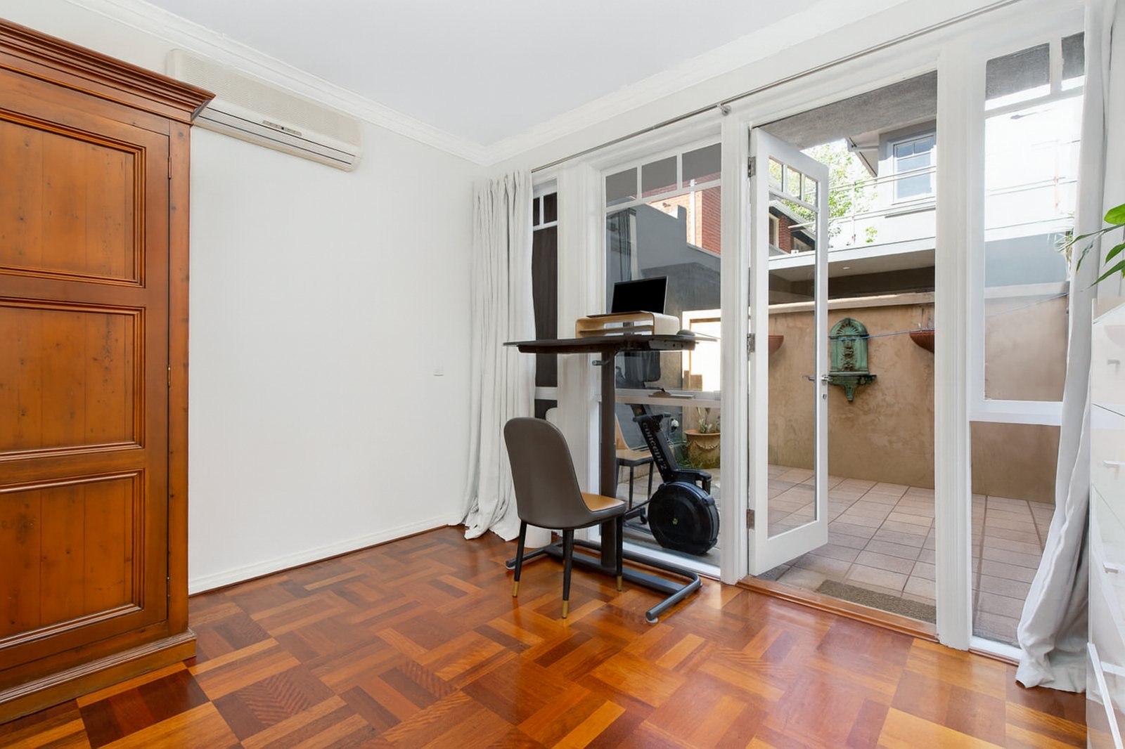 With two outdoor private spaces, a north facing sunny alfresco courtyard off the living room which is perfect for entertaining and an internal secluded courtyard off the main bedroom. A second bedroom, spacious bathroom, European laundry, and richly toned parquetry floors complete the package, along with split-system heating/cooling and a covered carport with direct roller-door access. With secure intercom entry shared by only two other residences, this unique home offers a blend of timeless character and modern comfort in one of Elwood’s most exclusive settings.