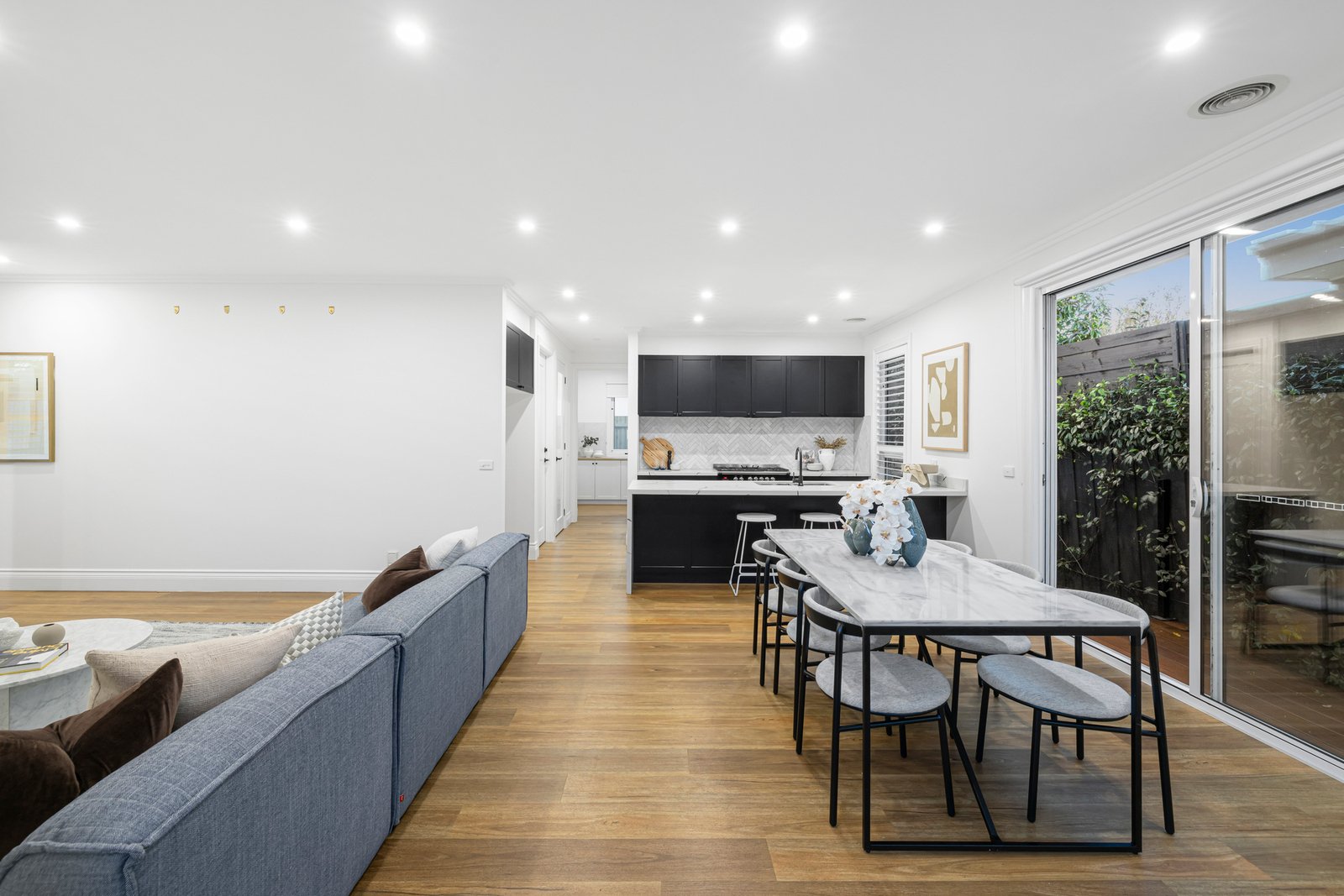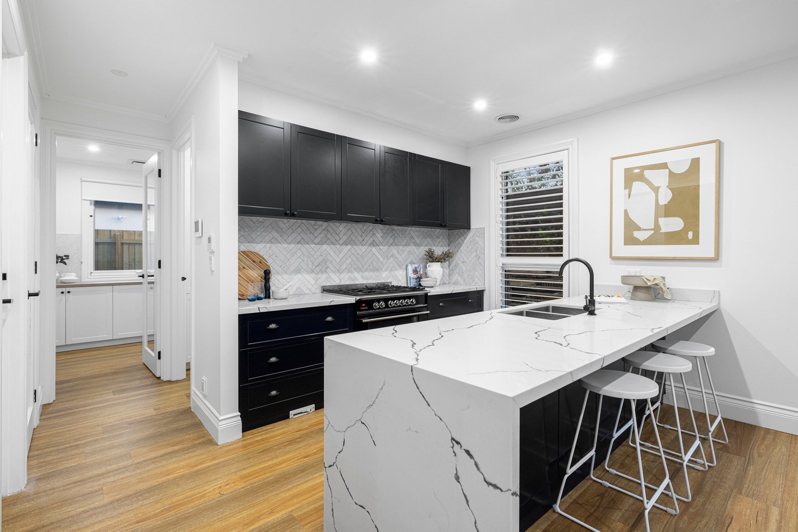 Few homes enjoy the prestige of a Queen Street address – and even fewer offer the level of sophistication and style found in this stunning, Hamptons-inspired residence. This designer home combines timeless elegance with modern luxury, all set in a peaceful, tree-lined boulevard just moments from the beach. Behind its crisp white façade, soaring ceilings and warm timber floors set the tone for the quality within. A dedicated home office/potential fourth bedroom greets you upon entry, leading through to a sun-filled open-plan living and entertaining zone that effortlessly balances comfort and style. At the heart of the home is a breathtaking kitchen showcasing high-end finishes including waterfall stone benchtops, rich navy shaker cabinetry, and premium appliances. Perfect for entertaining, it also features a generous butler’s pantry and an inviting breakfast bar, while stacker doors connect seamlessly to a north-facing alfresco deck ideal for year-round dining and relaxation. Outside, enjoy a low-maintenance landscaped garden and your own gas-heated pool – the ultimate lifestyle upgrade. Upstairs, a second living area with built-in study stations offers the perfect space for families or remote work. Three spacious bedrooms all include quality fitted storage, while the master suite is a true retreat with a walk-in robe and luxe ensuite featuring underfloor heating. The central bathroom continues the luxury feel with a clawfoot bath and a decadent wet-room style shower – also with underfloor heating. Additional features include a downstairs powder room, a large laundry with abundant storage and drying cupboard, ducted heating and refrigerated cooling, ducted vacuum system (with kitchen kicker), alarm and CCTV security, a water tank, and a large double auto garage with internal access. Situated just 800m from the sand, this prized location is walking distance to local cafes, bus stops, and the station. Families will appreciate zoning for both Mentone Girls’ and Parkdale Secondary Colleges, along with easy access to the area’s elite private schools. Disclaimer: The floorplan, room measurements, and land size provided are approximate and for illustrative purposes only. Buxton makes no representations or warranties regarding the accuracy, completeness, or reliability of any floorplan, drawing, or rendering used in the advertising materials. Buxton disclaims any liability for errors, omissions, or inaccuracies in the depiction of the land, property, or any described features. Prospective purchasers should conduct their own due diligence and seek independent professional advice to verify all information.