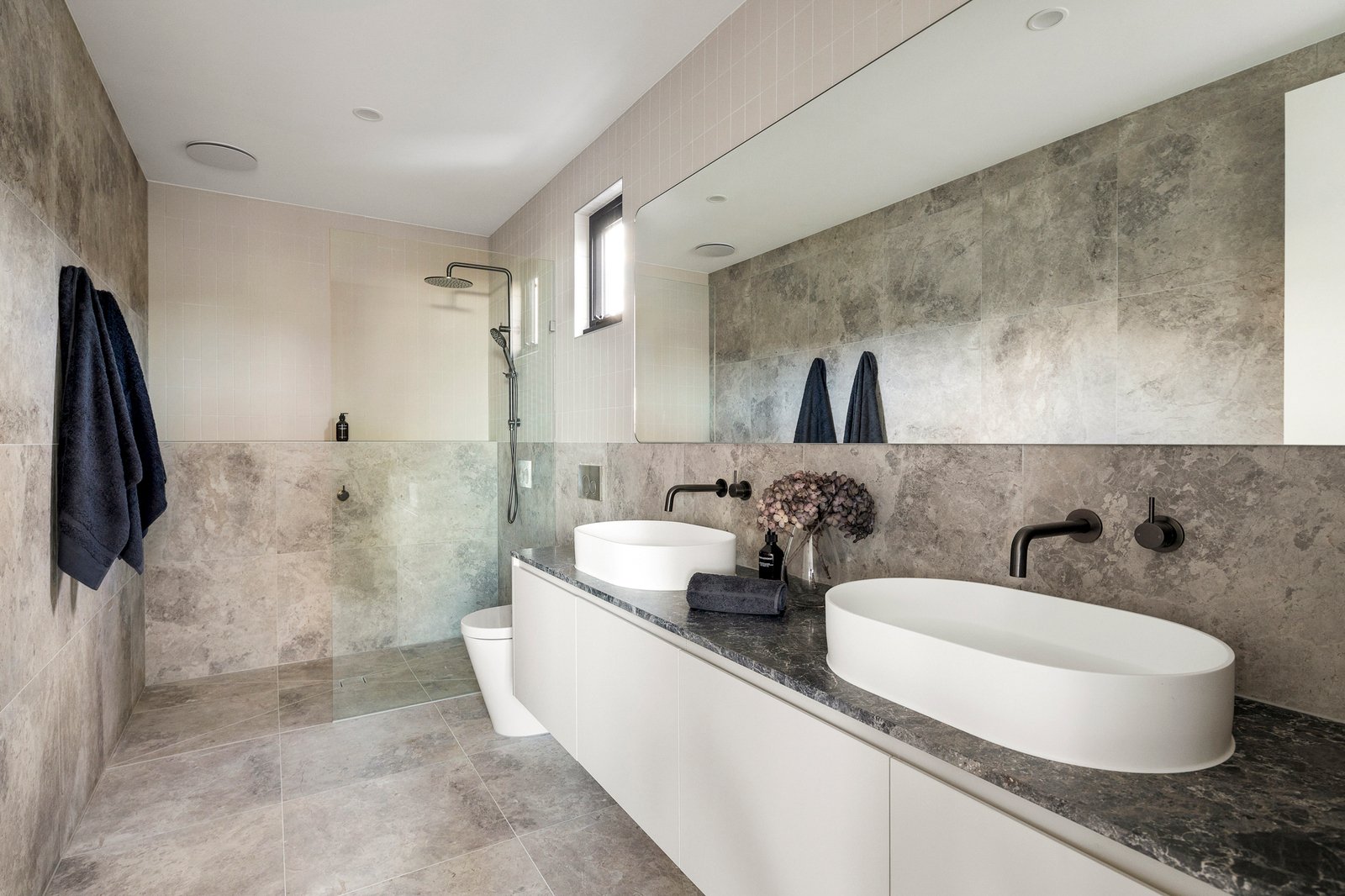 Families are spoiled with yet another bathroom and ground floor powder room, whilst zoned heating/cooling, a generous laundry, split-systems in most rooms and ample storage along with internal entry to the double auto garage are on a comprehensive list of attributes. Elevated by quality flooring, custom cabinetry, gorgeous bathrooms with luxe tiles and sleek gunmetal fittings, this is a home that has been fitted with flair.