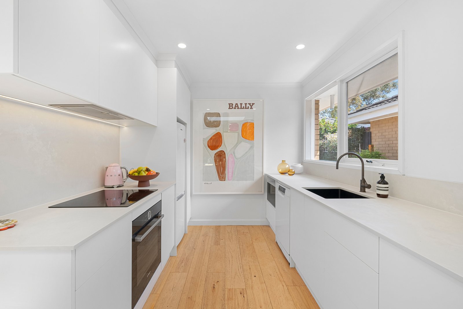 Inside, the interiors have been beautifully composed with thoughtful detail and natural warmth flowing through generous living and skylit dining zones. A sleek Bosch-appointed kitchen gazes towards northern greenery - where the home truly comes alive.
