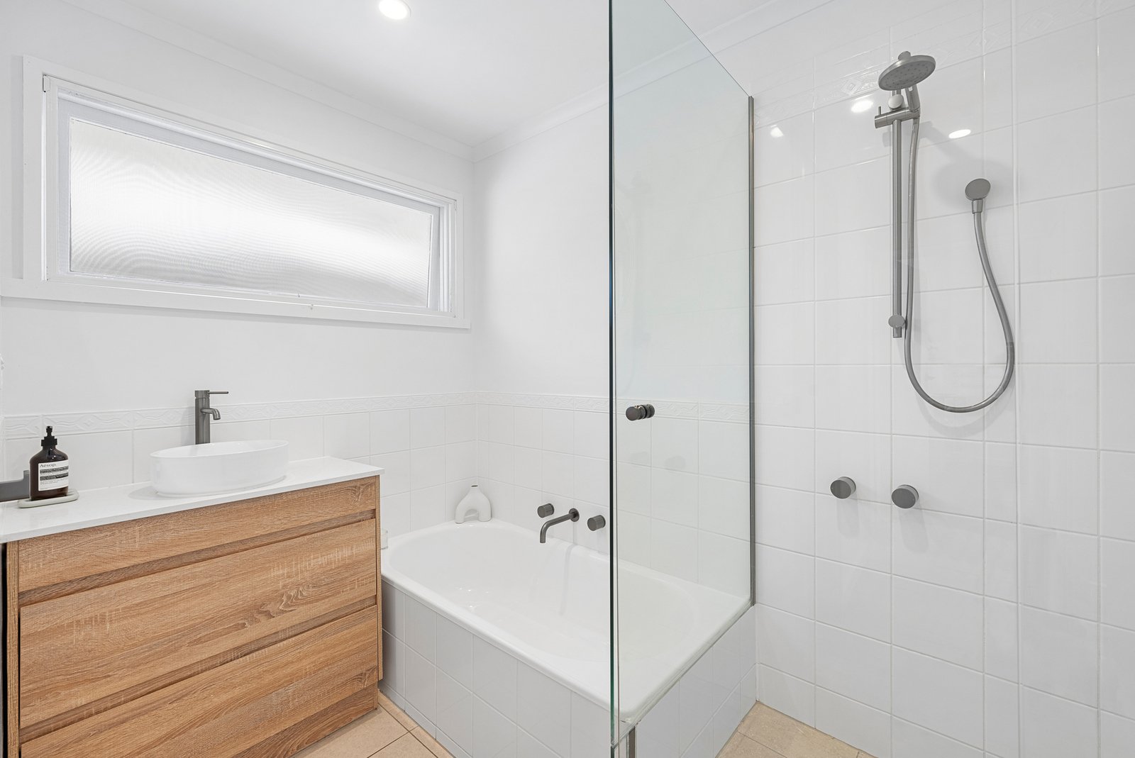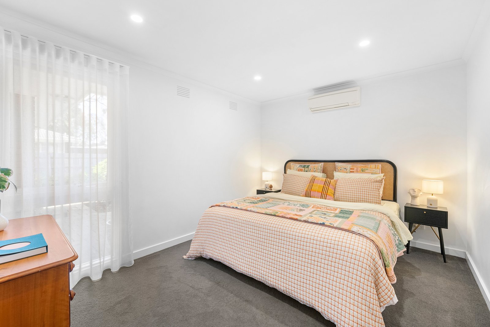 Two peaceful, robed bedrooms enjoy individual garden outlooks - the main to the lush front sanctuary, the second to the secluded - while engineered oak floors, two split-system air conditioners, a stylish bathroom with bath and separate shower, fitted laundry, separate WC, and a single garage complete the home’s understated refinement.