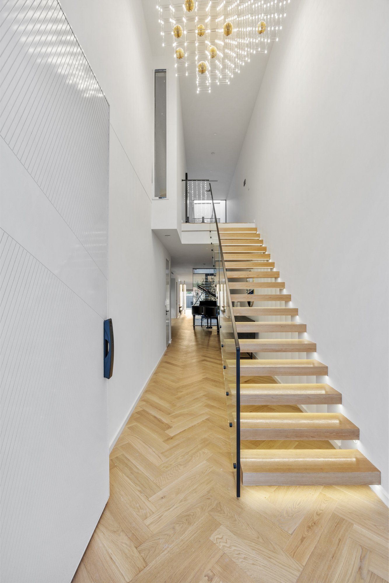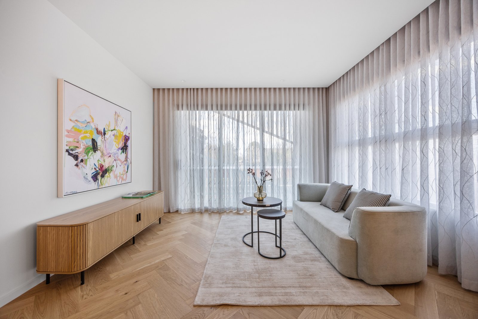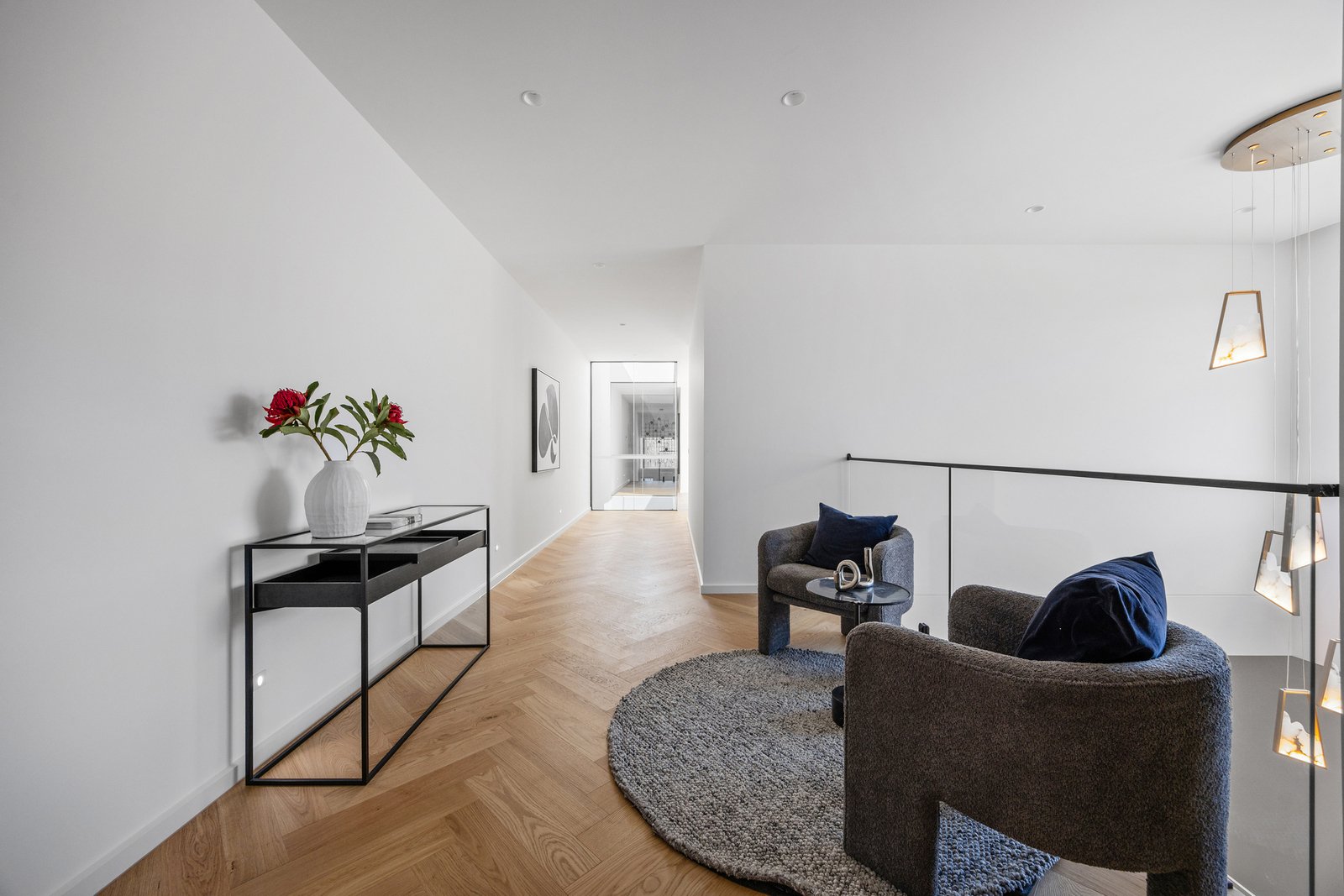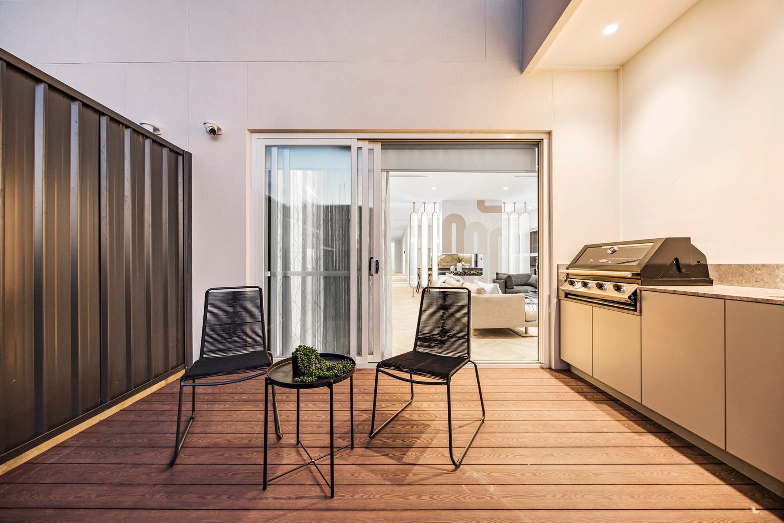 Tucked away in the heart of Glen Iris, this modern family townhouse exemplifies luxury, light and design precision across two beautifully appointed levels. Behind its secure entry, the home unfolds into an elegant open-plan living and dining zone divided by a two-way fireplace, enriched by hardwood parquetry flooring and soaring 3-metre ceilings. A dramatic dining void floods the space with light, anchored by a chandelier. Stepping outside, sliding doors connect effortlessly to the rear alfresco with built-in BBQ, outdoor sink and a low-maintenance garden - perfect for entertaining or family relaxation.