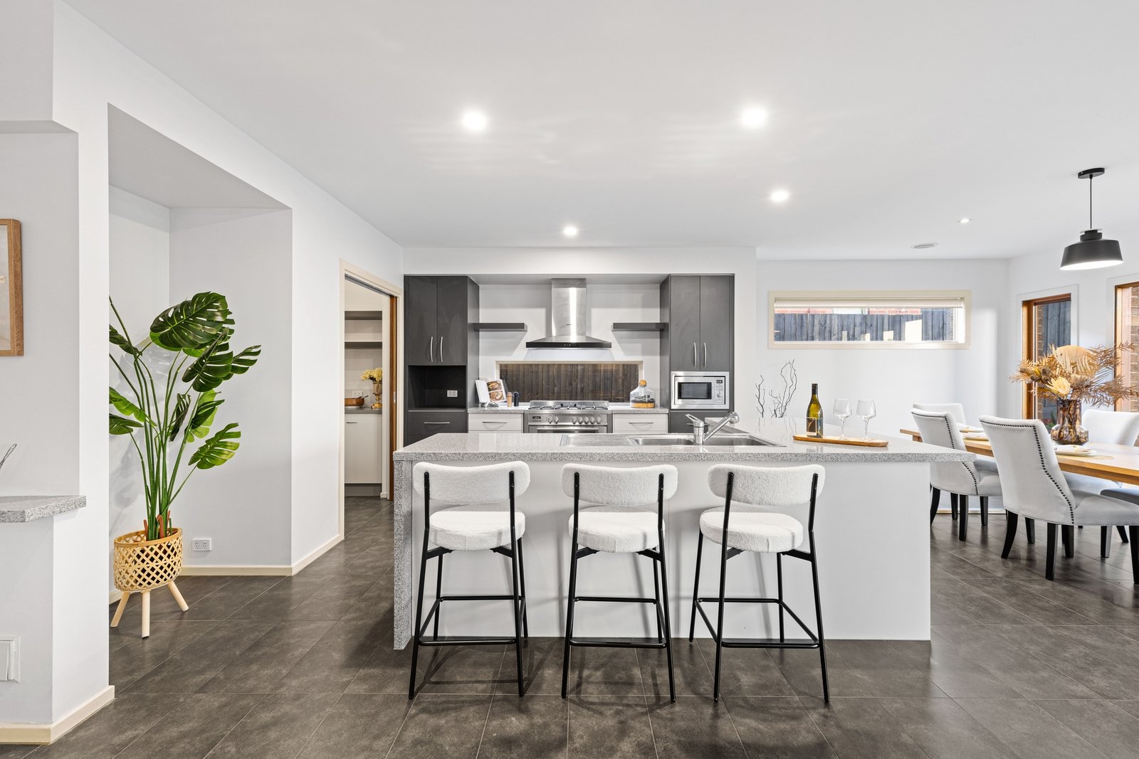Experience an effortless flow between multiple living zones, including a dedicated study or activity room, an upstairs family retreat, and a spectacular open-plan living area. This sun-drenched space is anchored by an inspiring modern kitchen, featuring Caesarstone benchtops, quality appliances, and a walk-in pantry, making it a gourmet's delight.