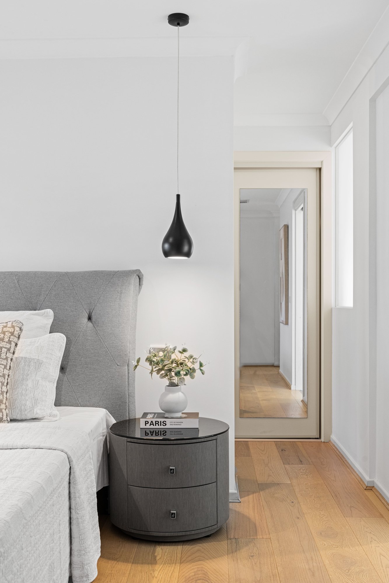 The upper level is dedicated to rest and retreat, featuring four generously-sized bedrooms. This includes a grand master suite with a walk-in robe, a sleek ensuite, and a private balcony, plus three additional well-proportioned bedrooms. A fifth bedroom downstairs provides the perfect accommodation for guests or multi-generational living.