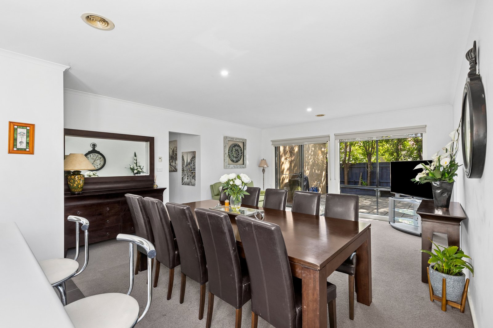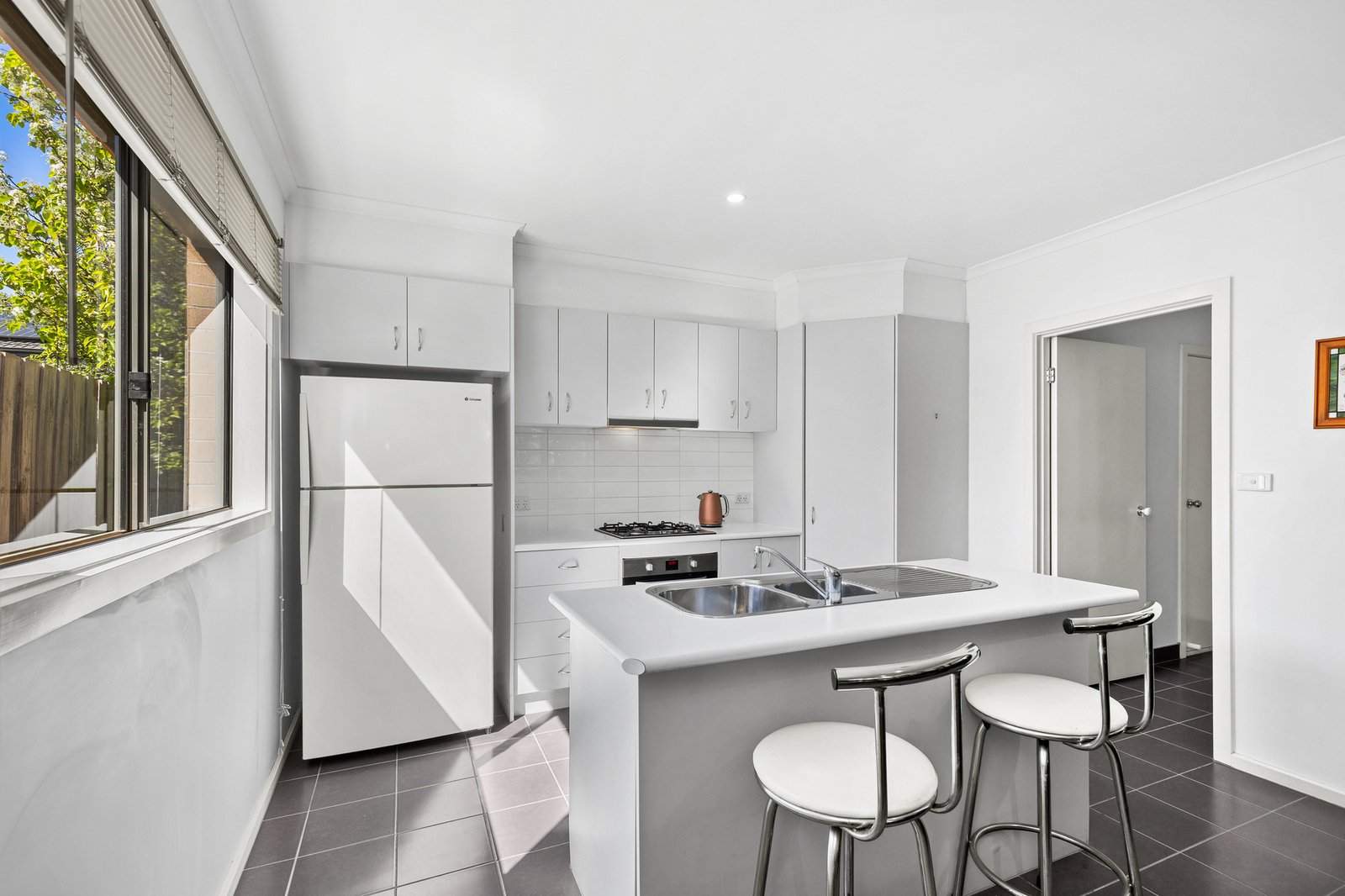 The rear of the home transitions to a light-filled open plan kitchen, dining and living area, with glass sliders connecting to the courtyard, for seamless indoor-outdoor living and entertaining. The elegant kitchen features modern appliances including 600mm oven, gas cooktop, dishwasher, and is well-positioned to overlook the dining space. Equipped for comfort and functionality, additional features include ducted heating, split system heating and cooling, a well-appointed laundry and generous linen storage.