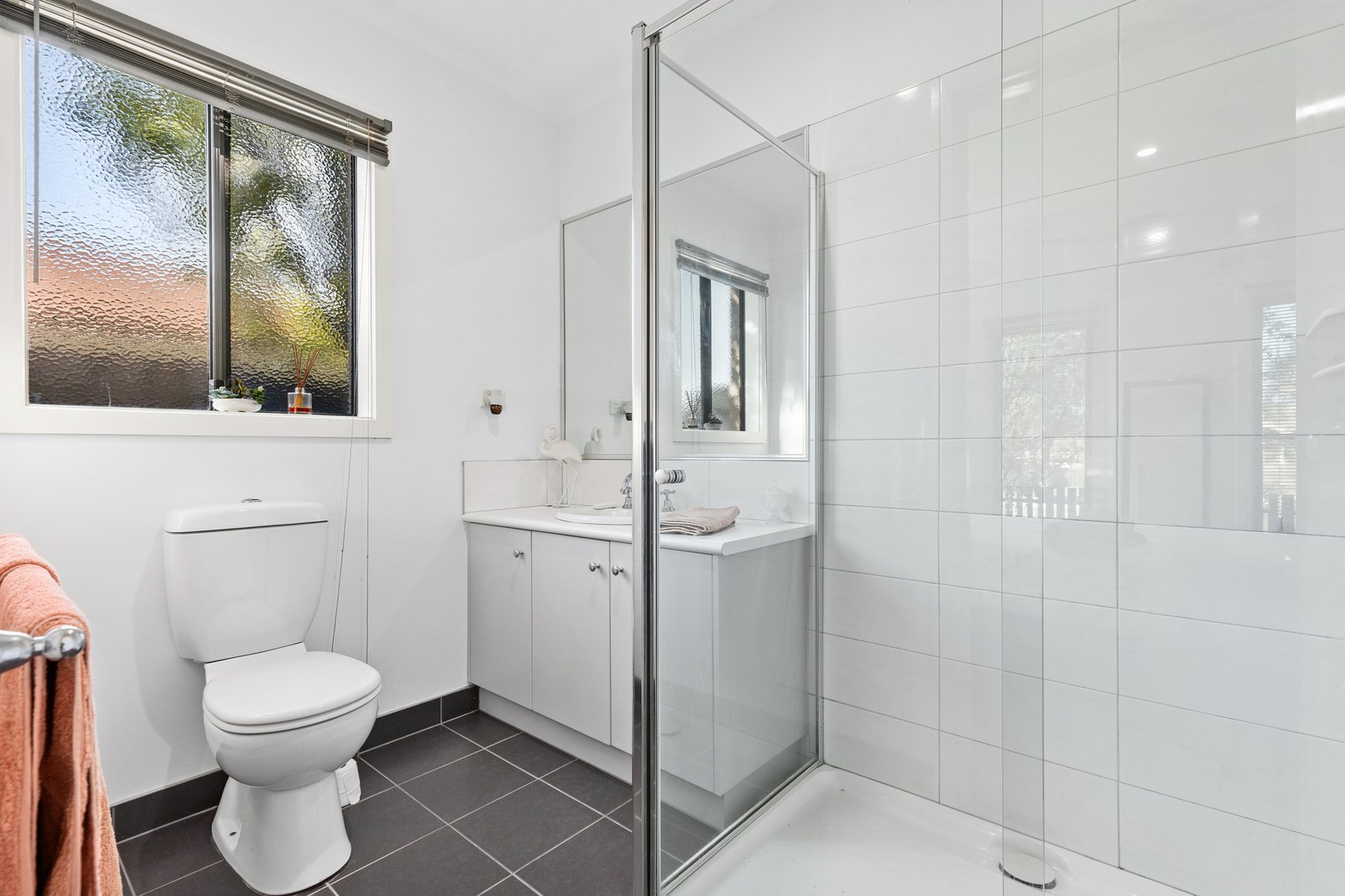 Set behind a picket fence and established trees, the home is nestled in a picturesque garden setting. Inside, white interiors and warm neutral accents create an inviting atmosphere throughout. Comprising three bedrooms, the main suite includes walk-in robes and a tastefully presented ensuite. Bedroom two also includes walk-in robes, while the third bedroom offers a versatile space that could also be used for a home office. The main bathroom includes a bath, separate shower, modern fittings, along with a separate wc.