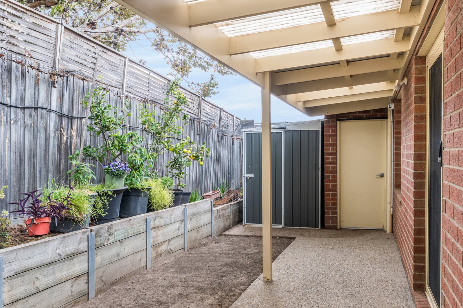 • Pergola and garden shed in private courtyard.