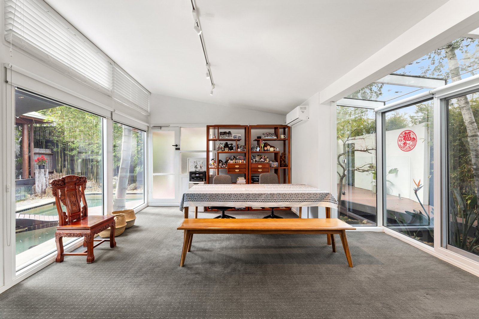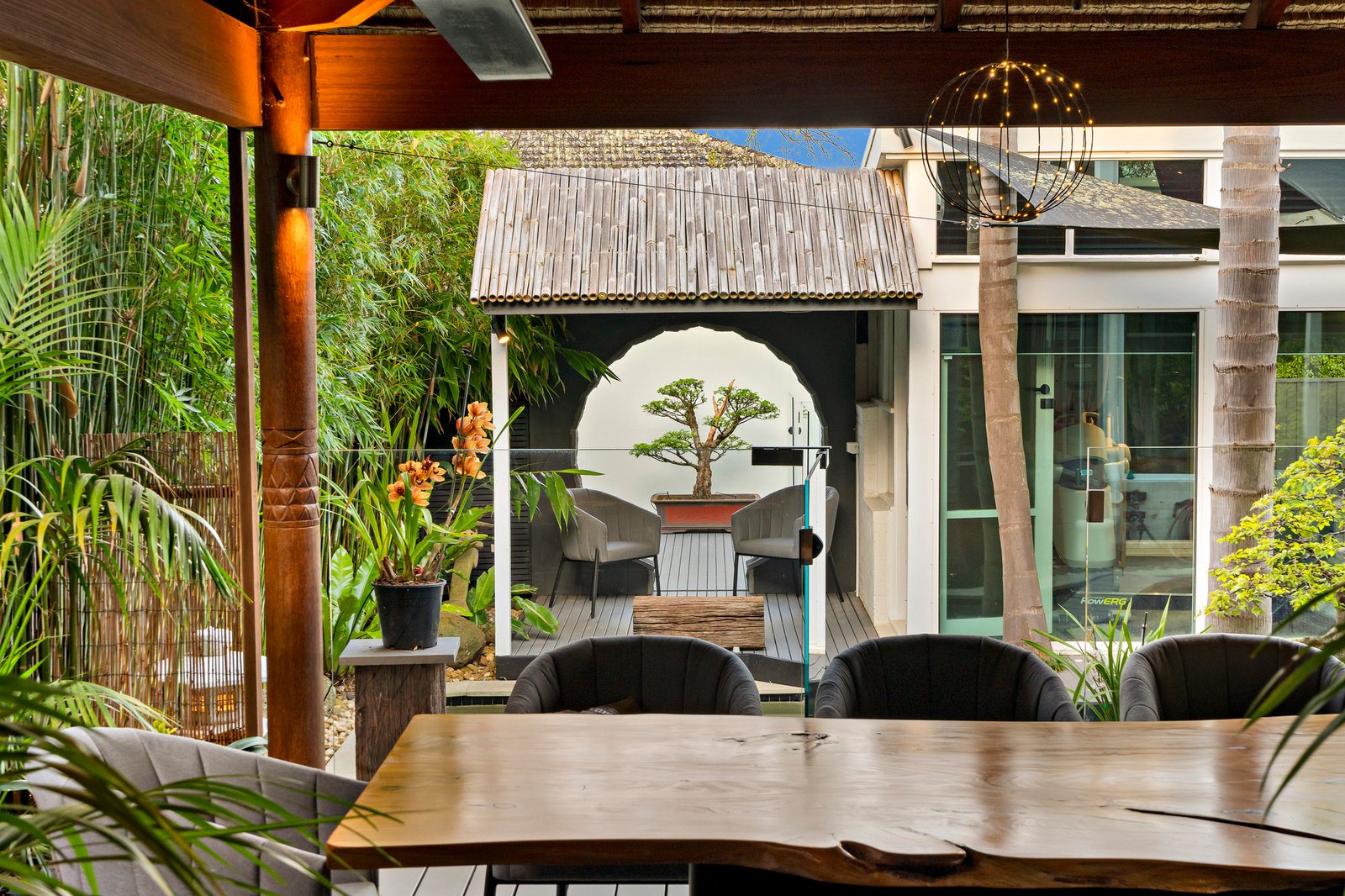 New boardwalks invite you to peruse the gardens at your leisure with a grand Moon Gate framing the bonsai alcove beyond the pool. Bifold doors to the deck and updated pool equipment guarantee you’re summer ready for poolside entertaining.
