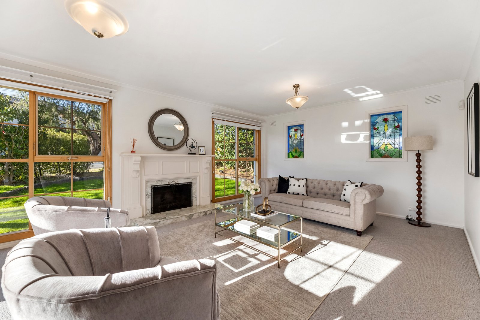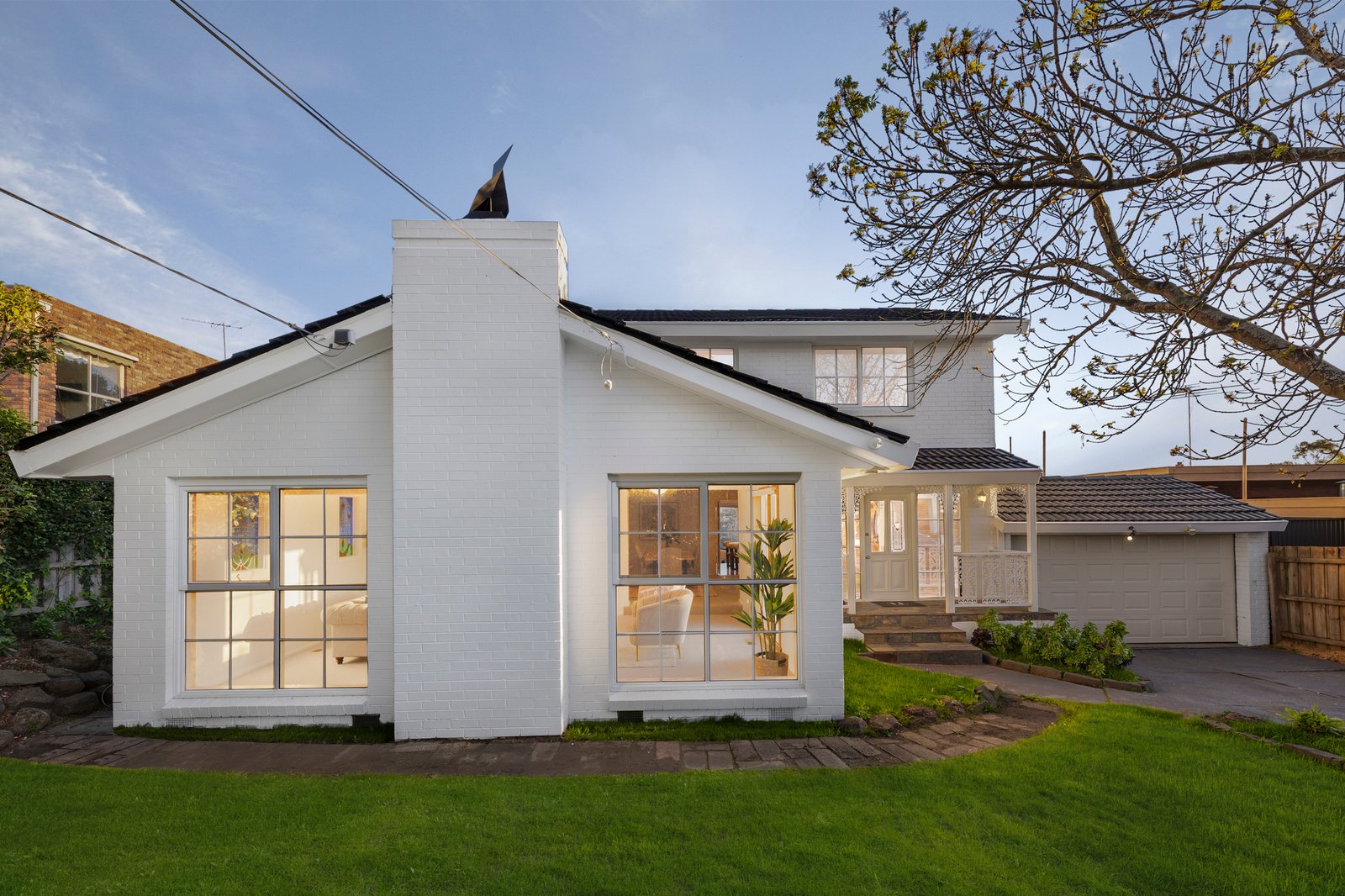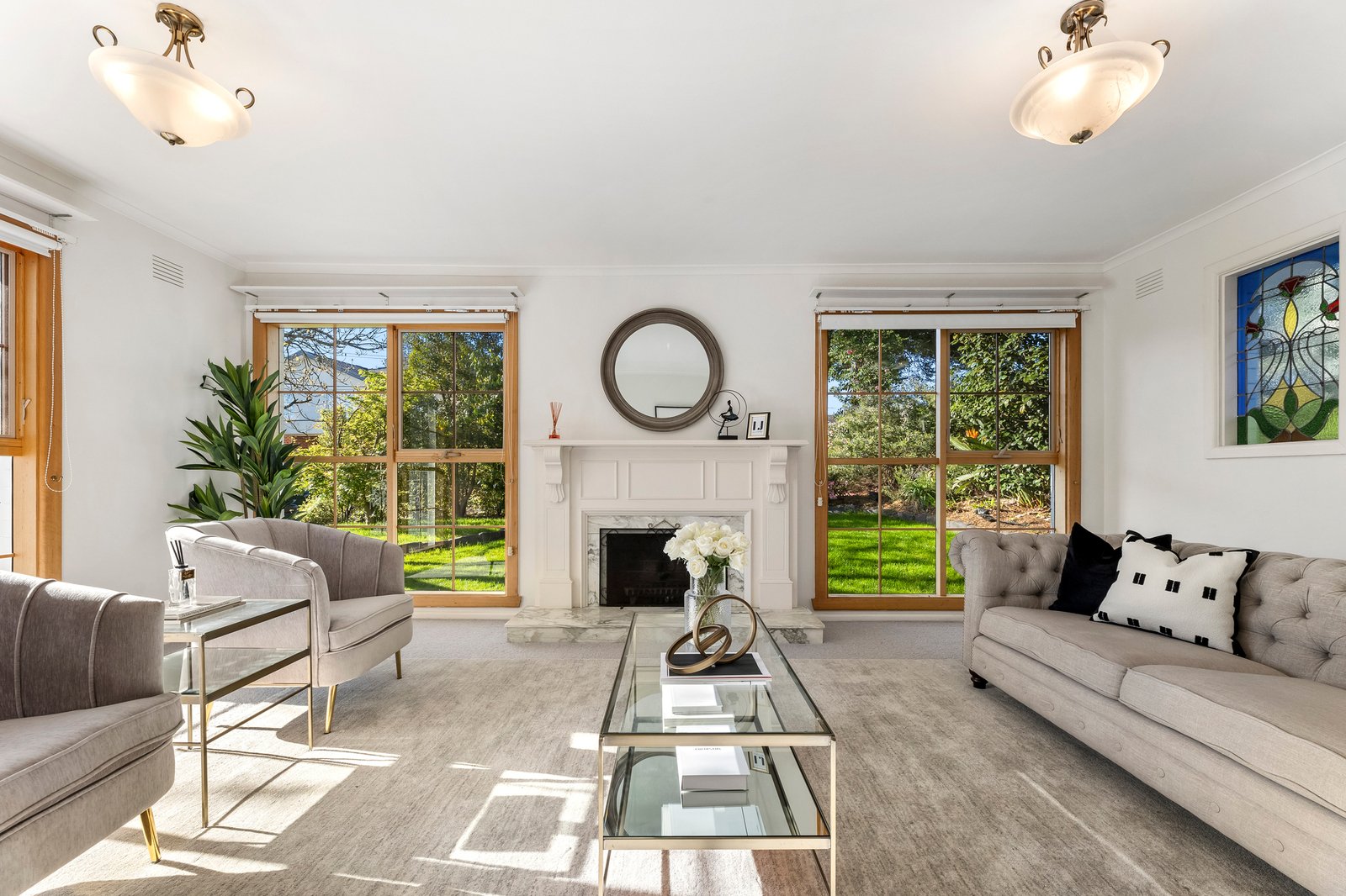 A pretty, front garden and character white façade create lovely street appeal. On the inside, the home’s floor plan spans two light-filled levels, with plenty of living space for the family to enjoy across a graceful lounge with a marble fireplace, a raised dining room, and a connected family room and rumpus.