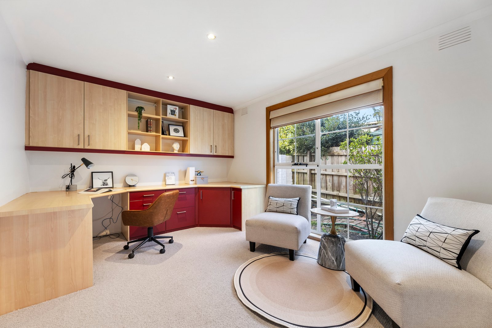 Students and remote workers will appreciate having a private corner to work in, designed with a practical built-in desk and storage shelves.