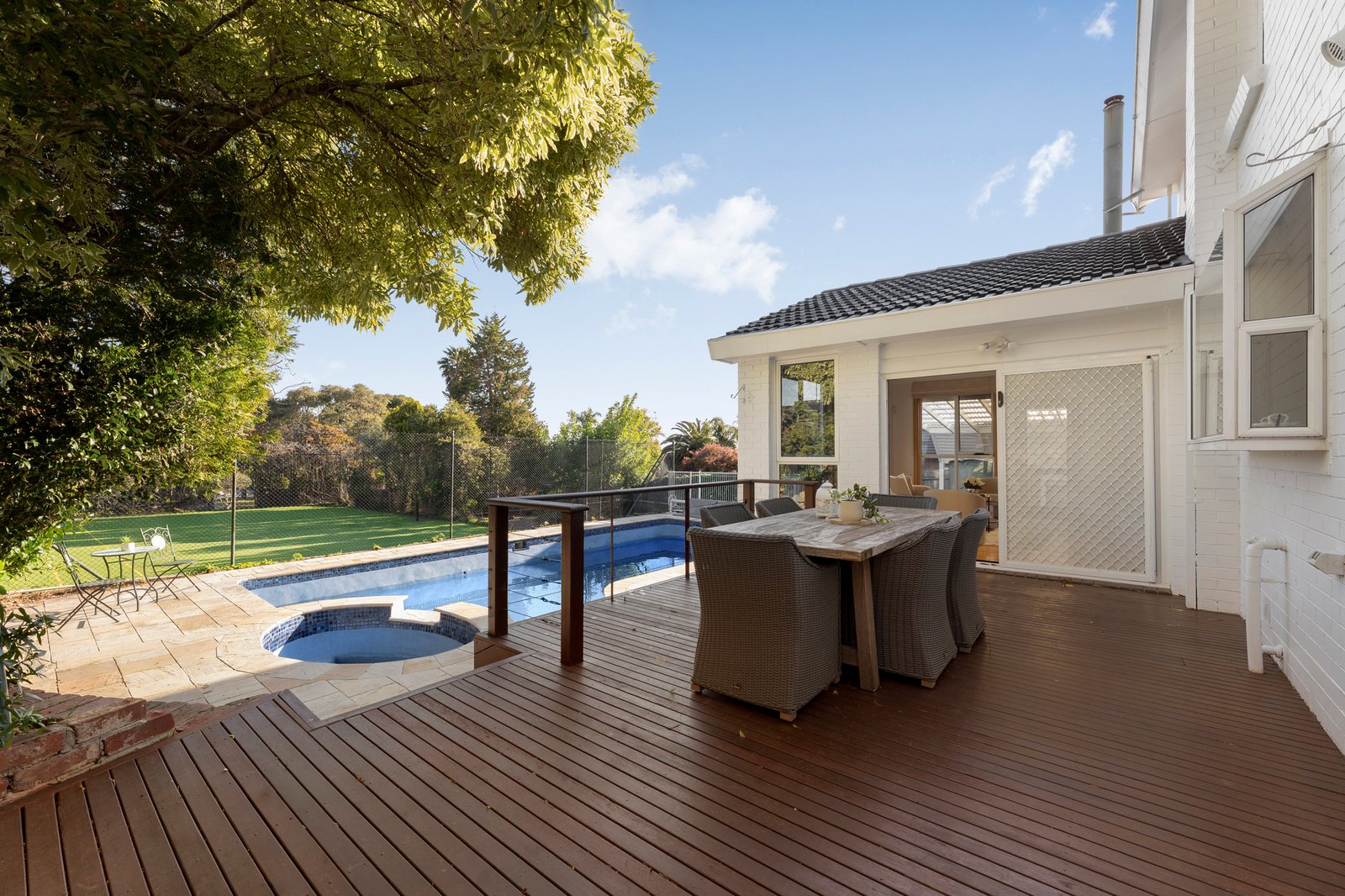 While the home’s frontage faces north on Highwood Dve, the boundary of the supersized block has a clever short cut through Ashley Close Reserve to Wheelers Hill Primary. Which puts you about 120m from the school gates for easy school drop and pick up, freeing up time for study, a swim in the pool or a game of tennis.