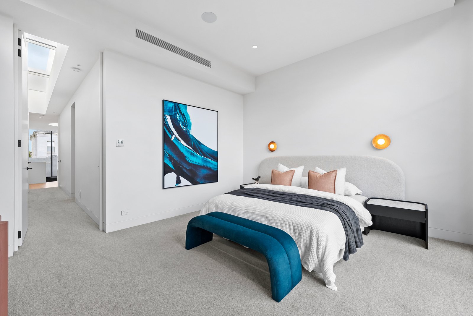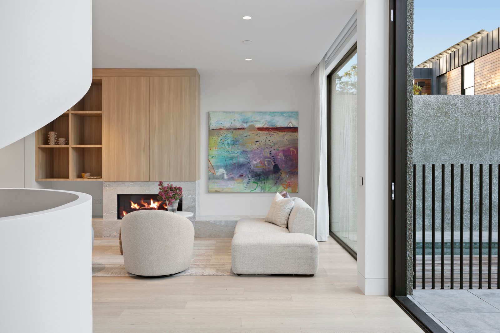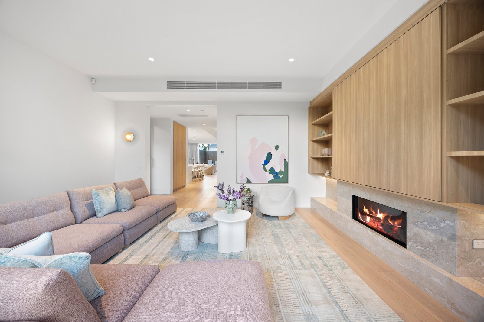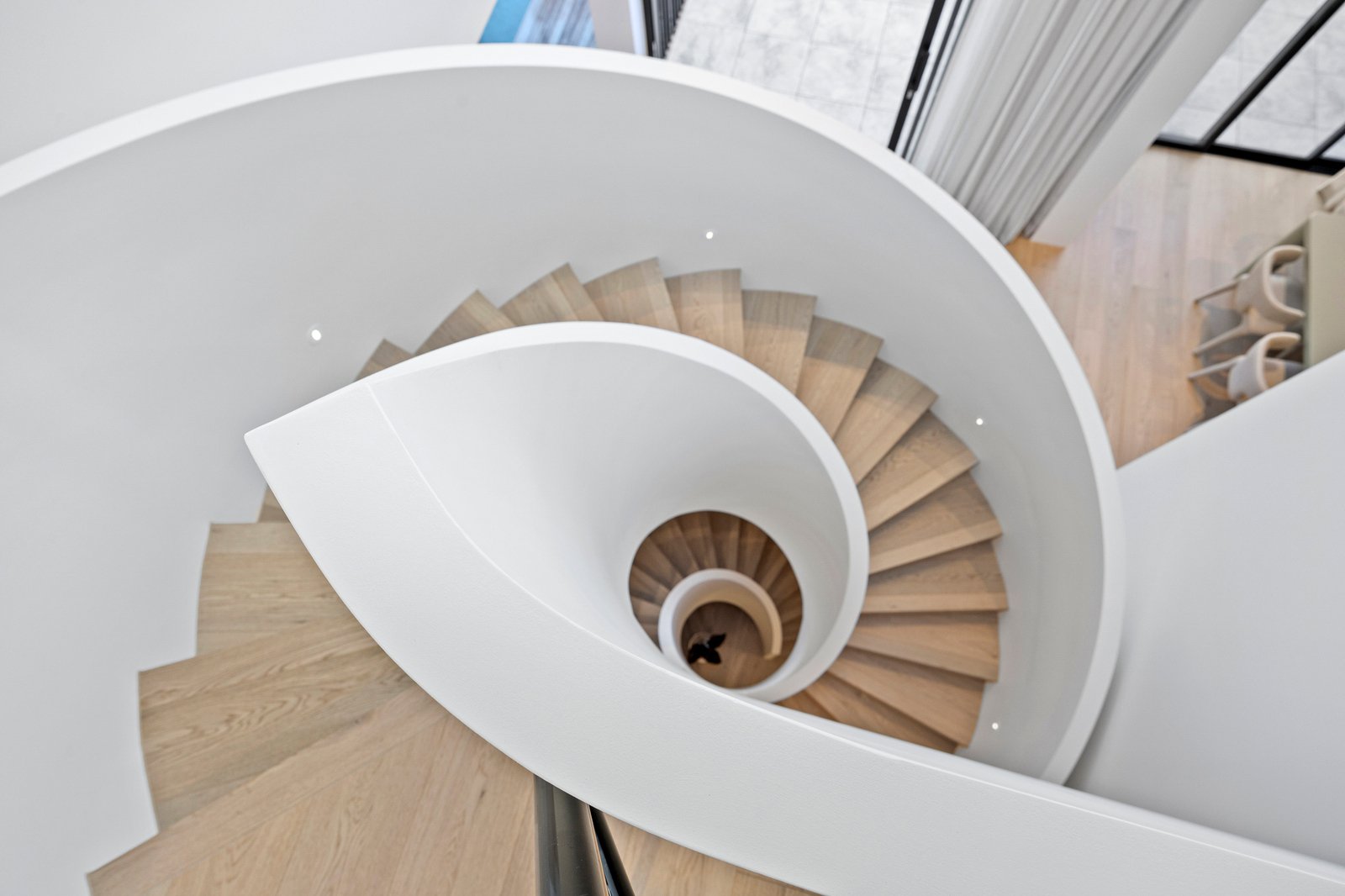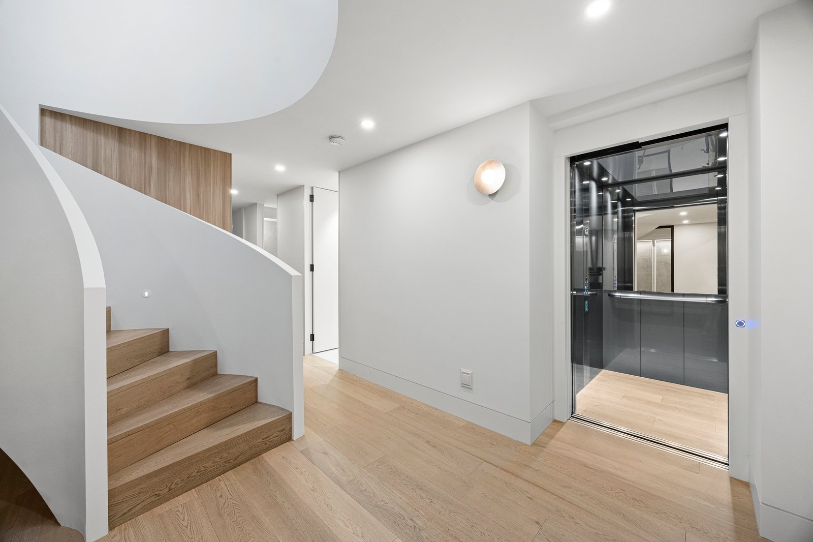 Soaring 3.2m to 7.4m ceilings, American oak flooring, and expansive skylights bathe the interiors in light, defining grand proportions where every element is perfectly resolved. At the heart of the home, a sculptural 3 level circular staircase anchors an impressive open-plan domain — dividing the refined lounge from the ambience-rich dining area — both framed by the exceptional culinary kitchen. Appointed with Miele appliances including induction cooktop, microwave/combi oven, integrated dishwasher and Liebherr fridge freezer, and a butler’s pantry with Zip Tap, this space elevates everyday living to an art form.