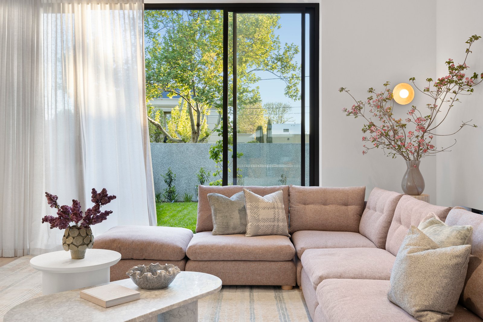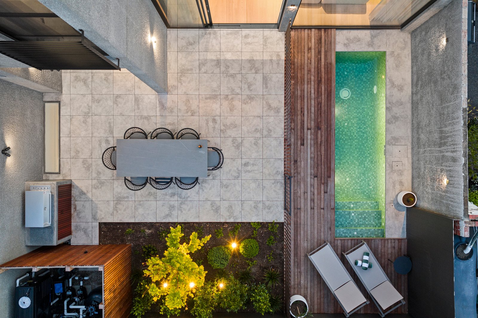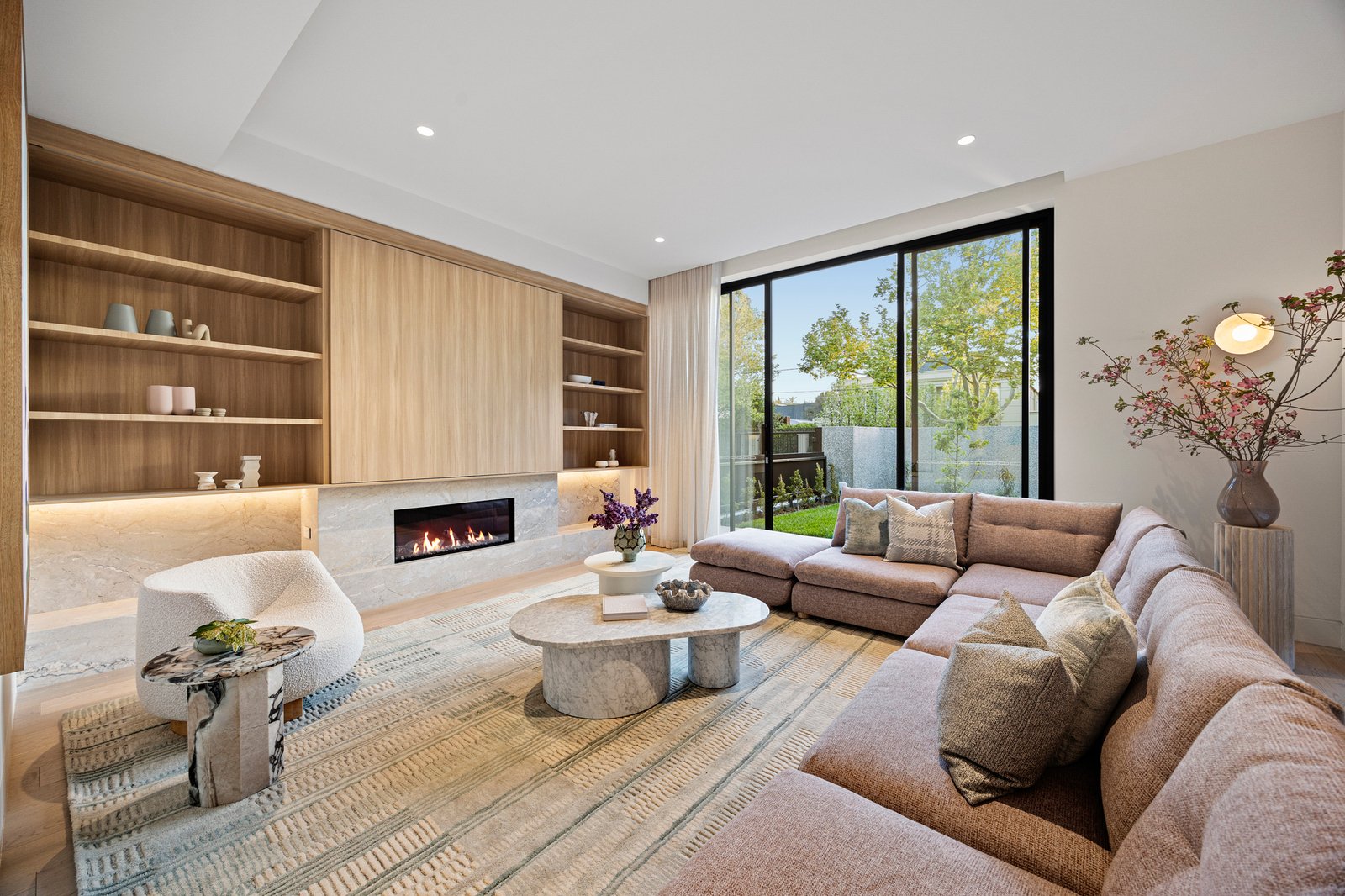 Design ingenuity continues with a 300-bottle cellar room, a custom home office, and a luxurious Calcutta Vagli bathroom on the main level. Outdoors, award-winning John Patrick Landscape Architects have created a private sanctuary — with manicured gardens, an inviting fully automated pool, and alfresco dining zone with BeefEater BBQ — a sublime setting for entertaining and relaxation.
