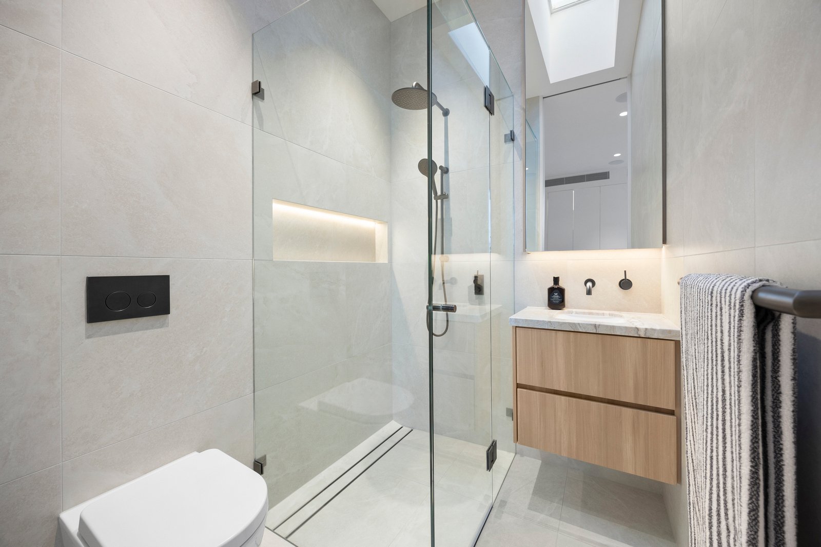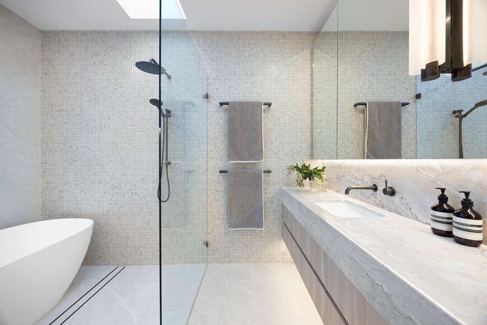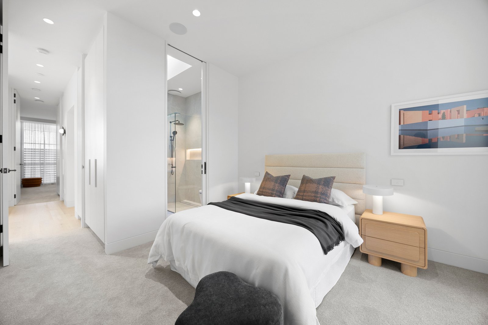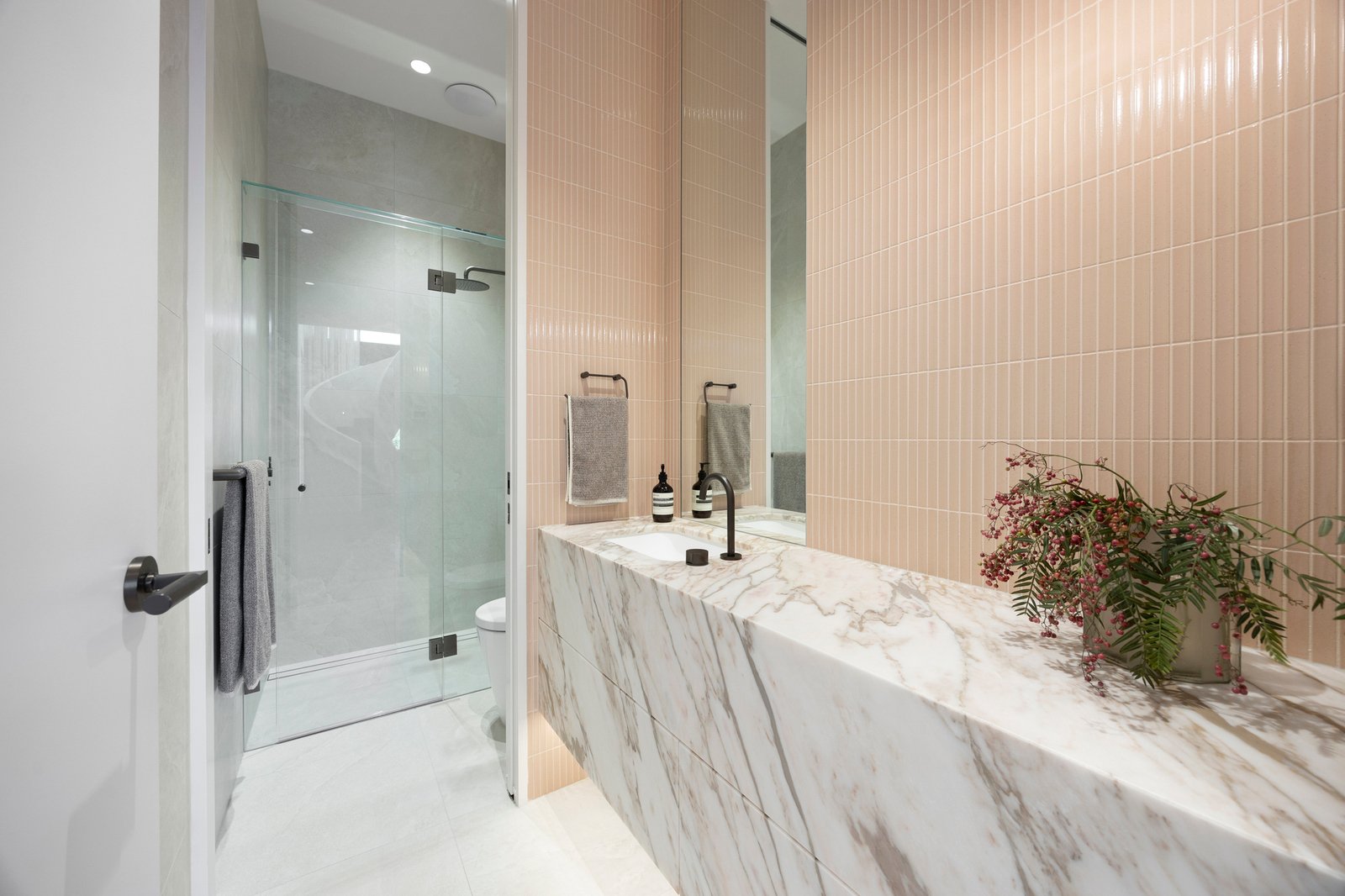 Design ingenuity continues with a 300-bottle cellar room, a custom home office, and a luxurious Calcutta Vagli bathroom on the main level. Outdoors, award-winning John Patrick Landscape Architects have created a private sanctuary — with manicured gardens, an inviting fully automated pool, and alfresco dining zone with BeefEater BBQ — a sublime setting for entertaining and relaxation.