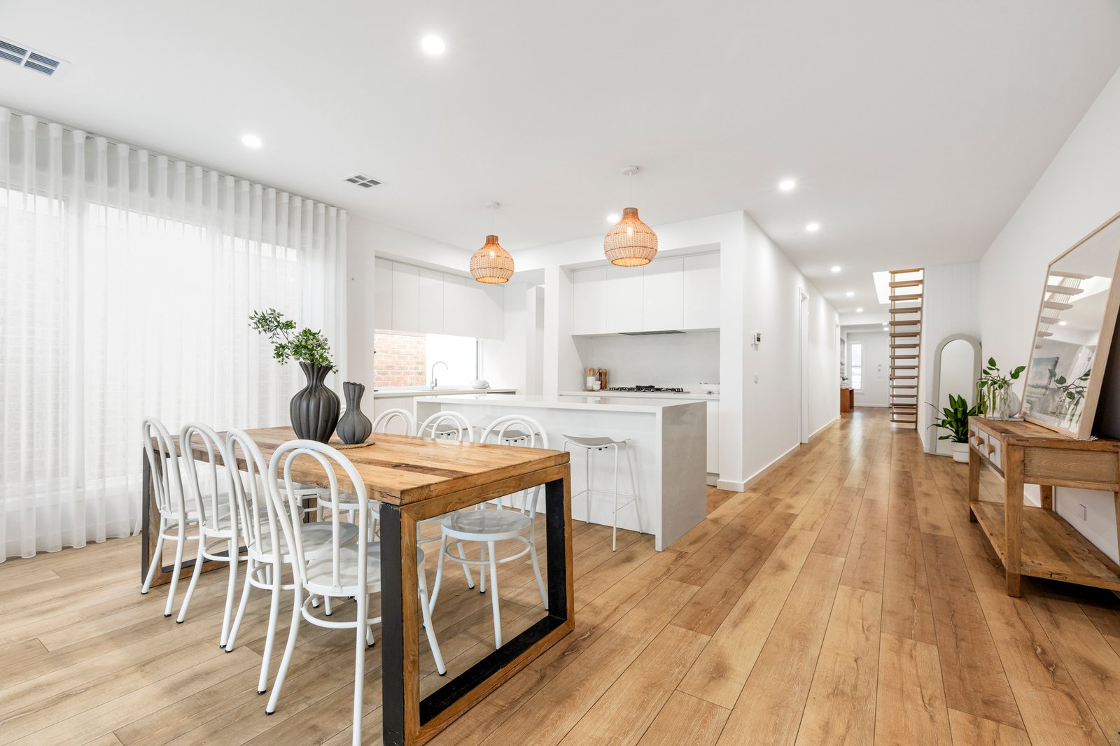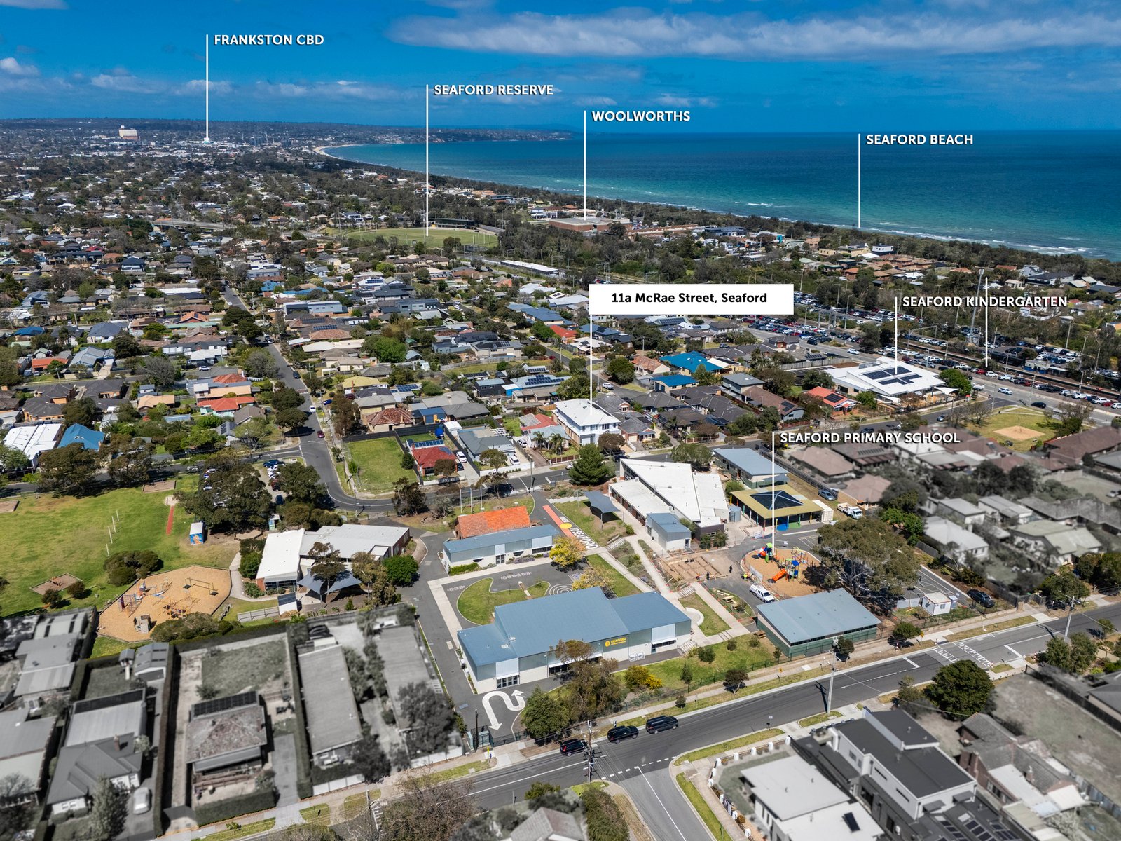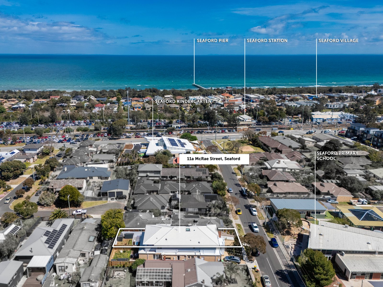 With its luxurious family-sized spaces and prime position, this recently completed 4 bedroom, 3 bathroom dual living residence offers contemporary coastal living in Seaford’s heart. Positioned just 350 metres from the village, station, schools and pristine stretches of sand, every lifestyle convenience is on your doorstep. Ensuite bedrooms featuring walk-in robes and living zones on each level promise the ultimate in family comfort; the bathrooms stylishly appointed with sublime walk-in rain showers, full-height tiling and double vanities. A sun-drenched northern aspect, neutral palette of warm timber accents and polished stone surfaces impresses, as does the ambiance of a electric log fireplace, further elevated by a curved wall and soft sheers. At the social hub of this home is a dream kitchen, featuring a butler’s pantry, island bench and Miele appliances, including double ovens for those who love to host. Light-filled open-plan living and dining with automatic blinds, unfolds onto an outdoor entertaining deck and backyard, with a spacious second living zone residing upstairs. Here, you’ll also find the sumptuous master retreat, two further robed bedrooms and a sleek main bathroom. Highlights include a downstairs powder room, video intercom, security system, remote garage with internal entry and driveway parking. Stroll to beachside eateries, gelato and shopping, or catch the train for a city commute. Seaford Primary School, Seaford North Reserve, the iconic pier, stunning foreshore and walking tracks are all at your fingertips. Simply lock, leave and enjoy!