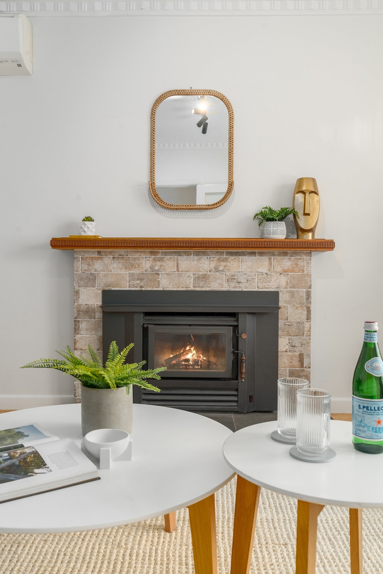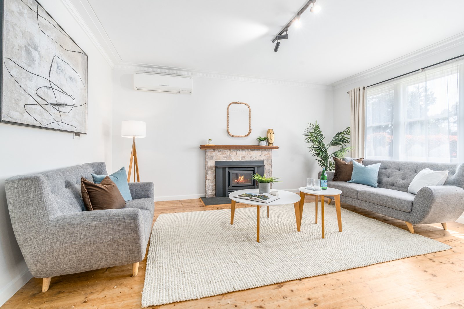 • Formal lounge with wood-burning fireplace and split-system heating and cooling
