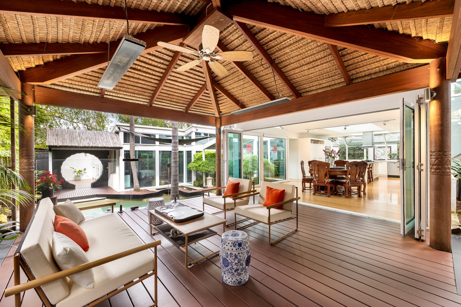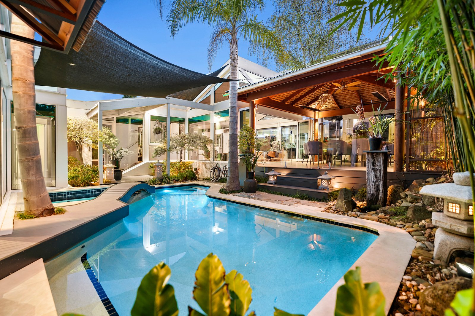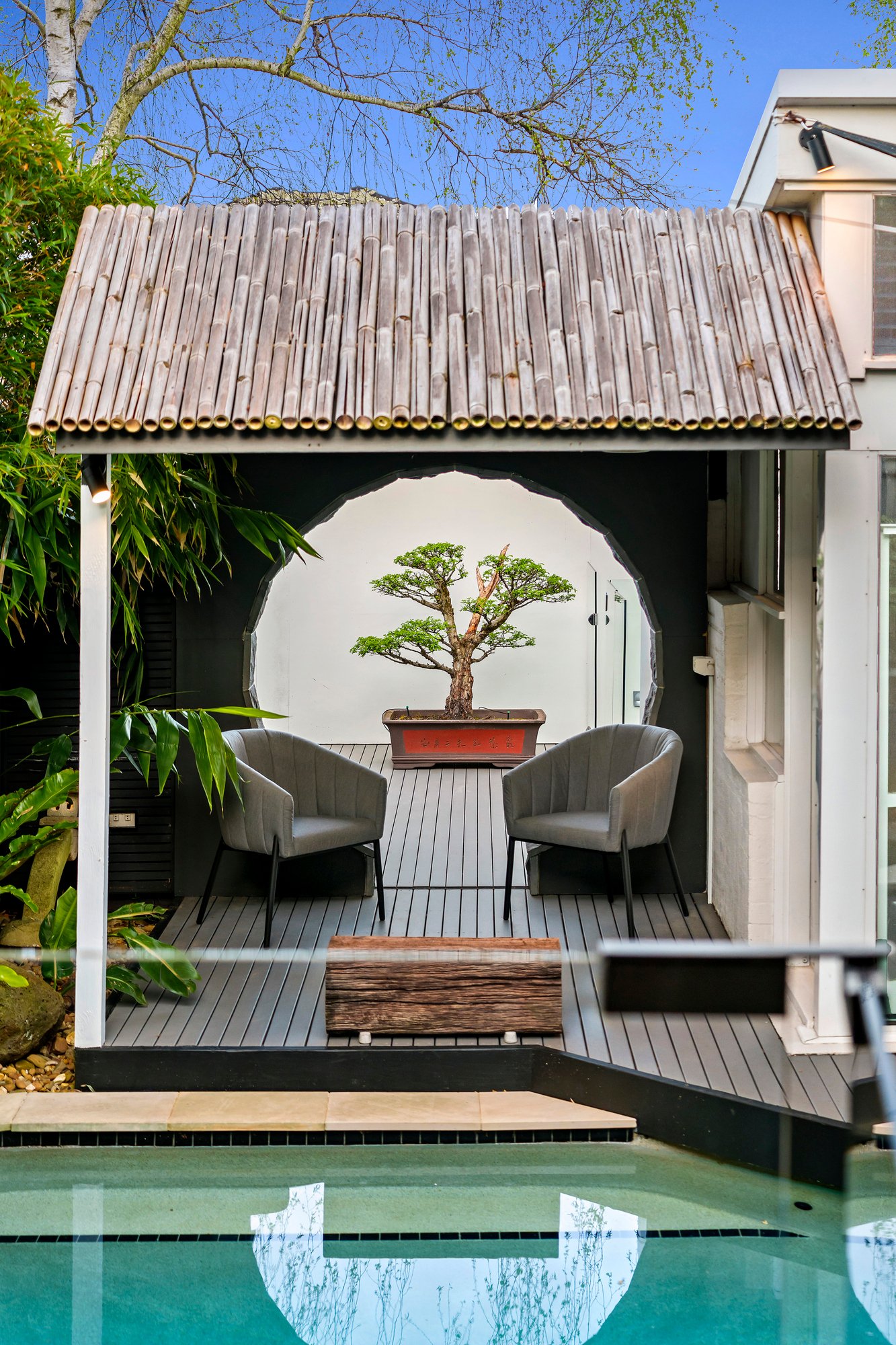New boardwalks invite you to peruse the gardens at your leisure with a grand Moon Gate framing the bonsai alcove beyond the pool. Bifold doors to the deck and updated pool equipment guarantee you’re summer ready for poolside entertaining.