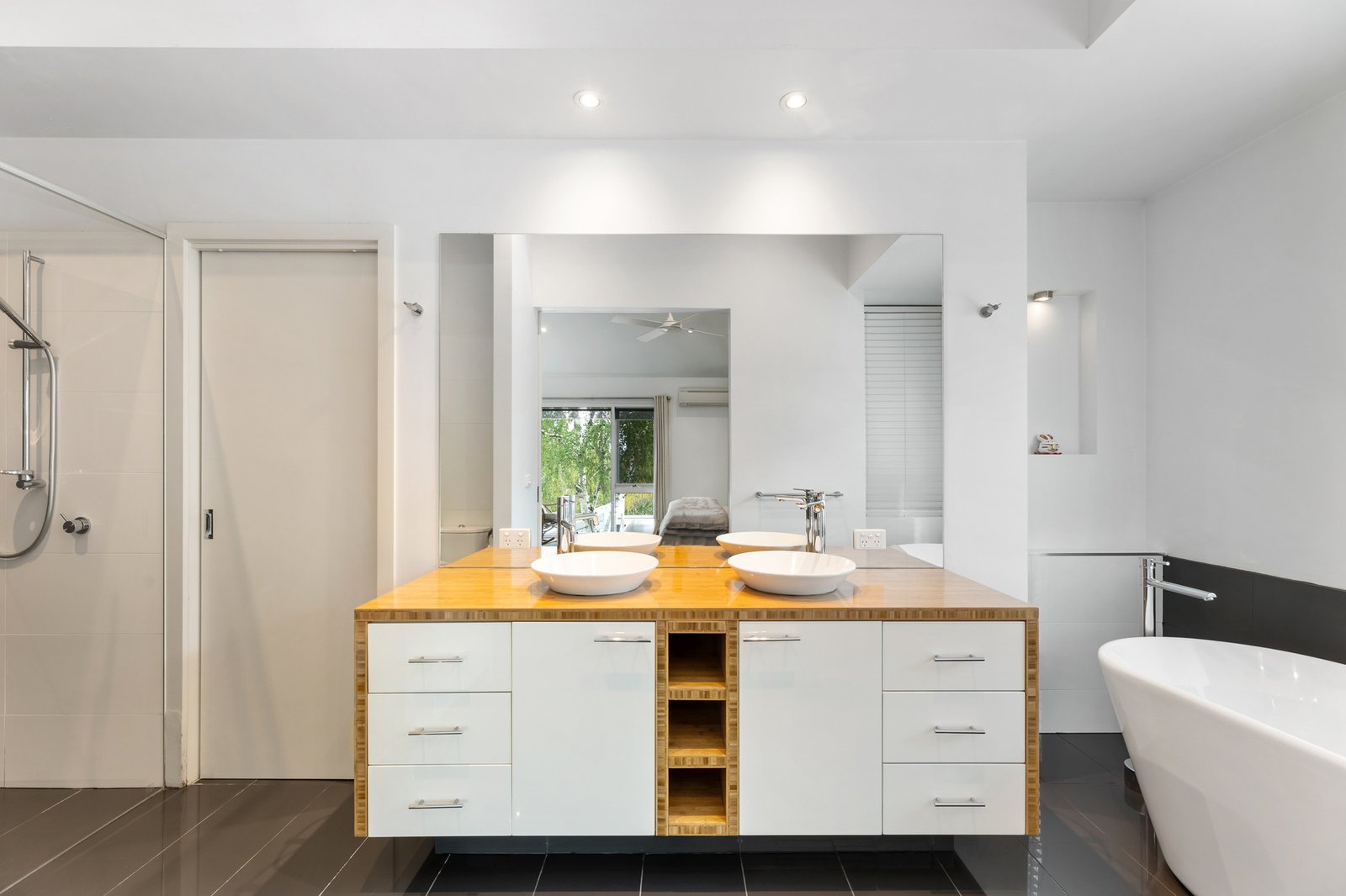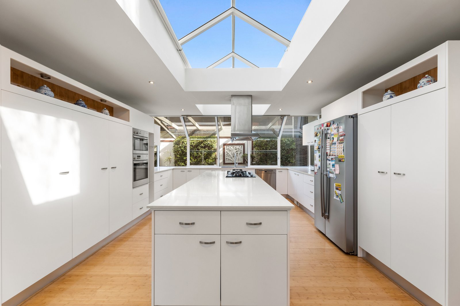 Bedrooms at either end of the home and the freedom of 3 bathrooms provide the utmost privacy for the family, and for guests. A spectacular sloping glass roof from the top level ensuite transforms The Dandenong Ranges into a postcard perfect view.