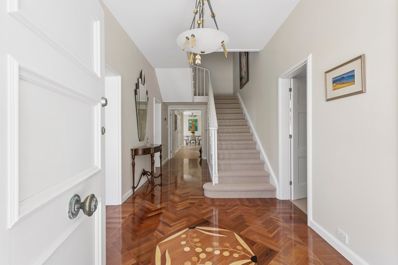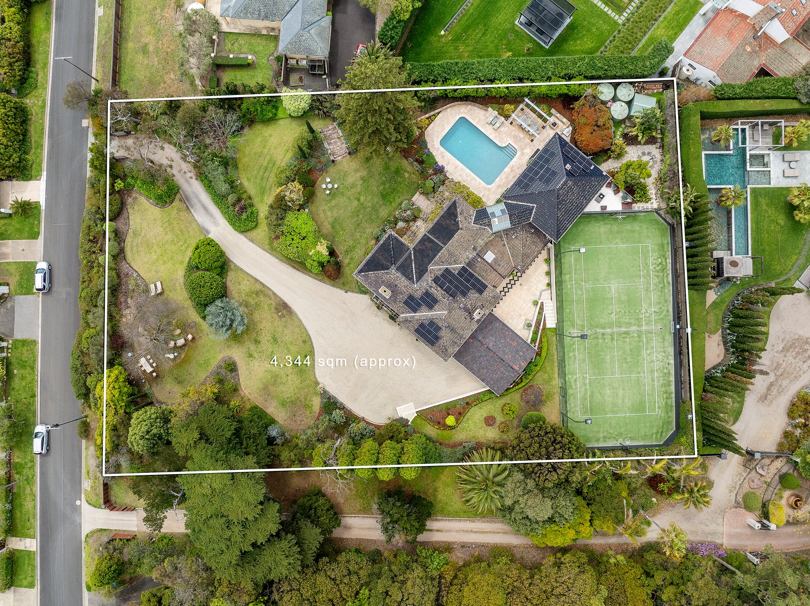 Wisteria cascades across the facade and pergola, creating a graceful prelude to interiors layered in parquetry floors and timeless charm. Formal living and dining domains gather around a fireplace, unfolding through French doors to a travertine verandah that encircles the pool and undercover spa. An adjoining billiards/rumpus room, together with a full-size tennis court, complete the impressive recreation suite.