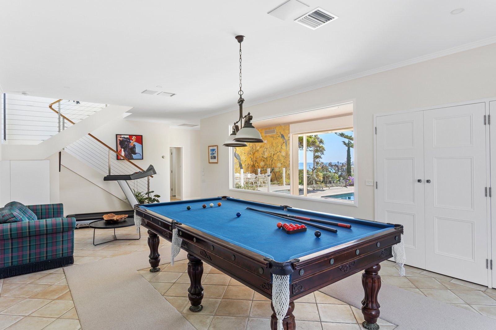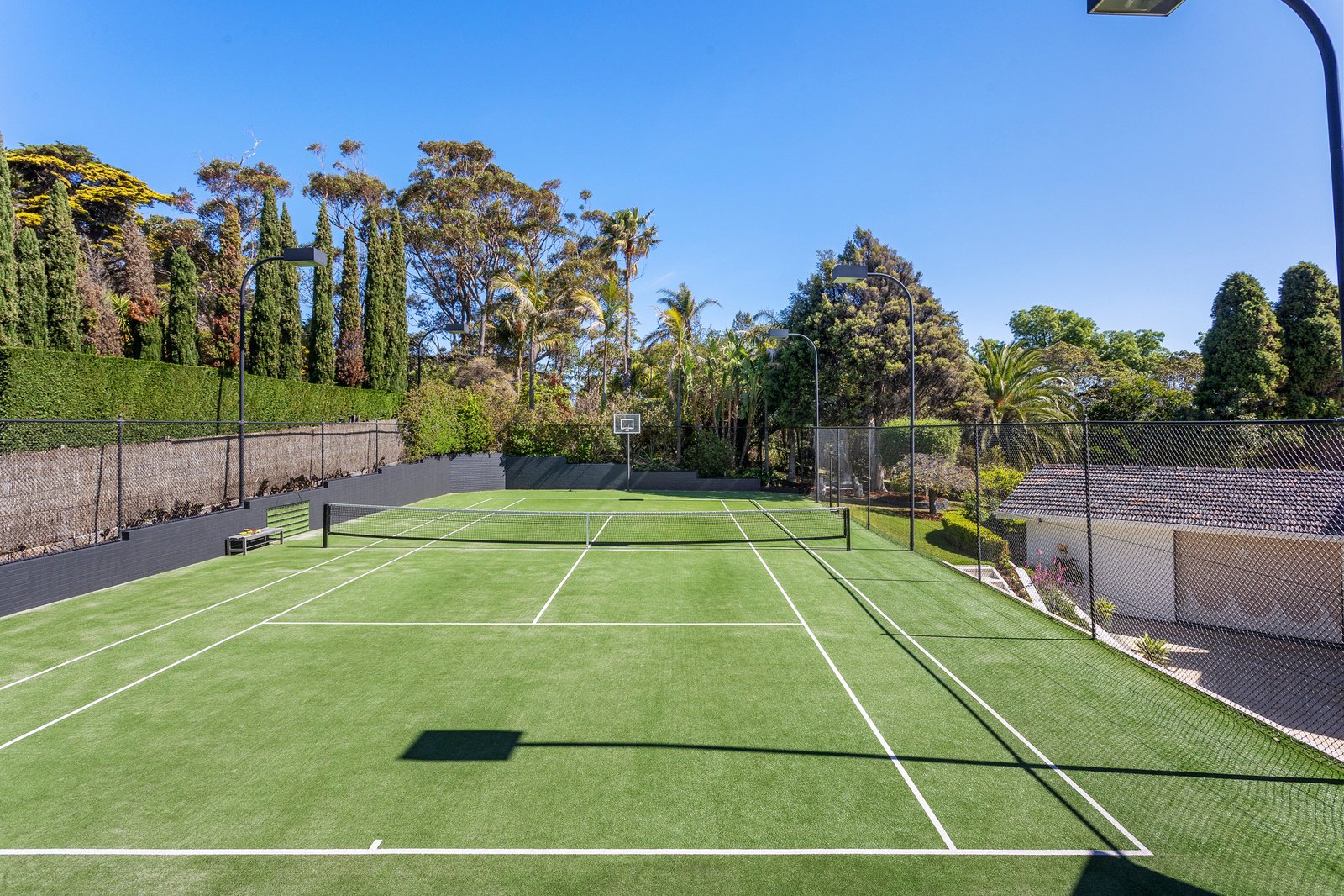 Unfolding across a six-bedroom, four-bathroom layout, the design is intuitively arranged for multigenerational living or hosting guests on a grand measure. Majority of accommodation crowns the upper level to maximise the bay outlooks, including a primary suite and a main bathroom featuring a Japanese soaking tub for a note of indulgence. A relaxed living area with kitchenette and dual-sided balconies extends the experience, perfect for entertaining or unwinding after a swim or tennis match.