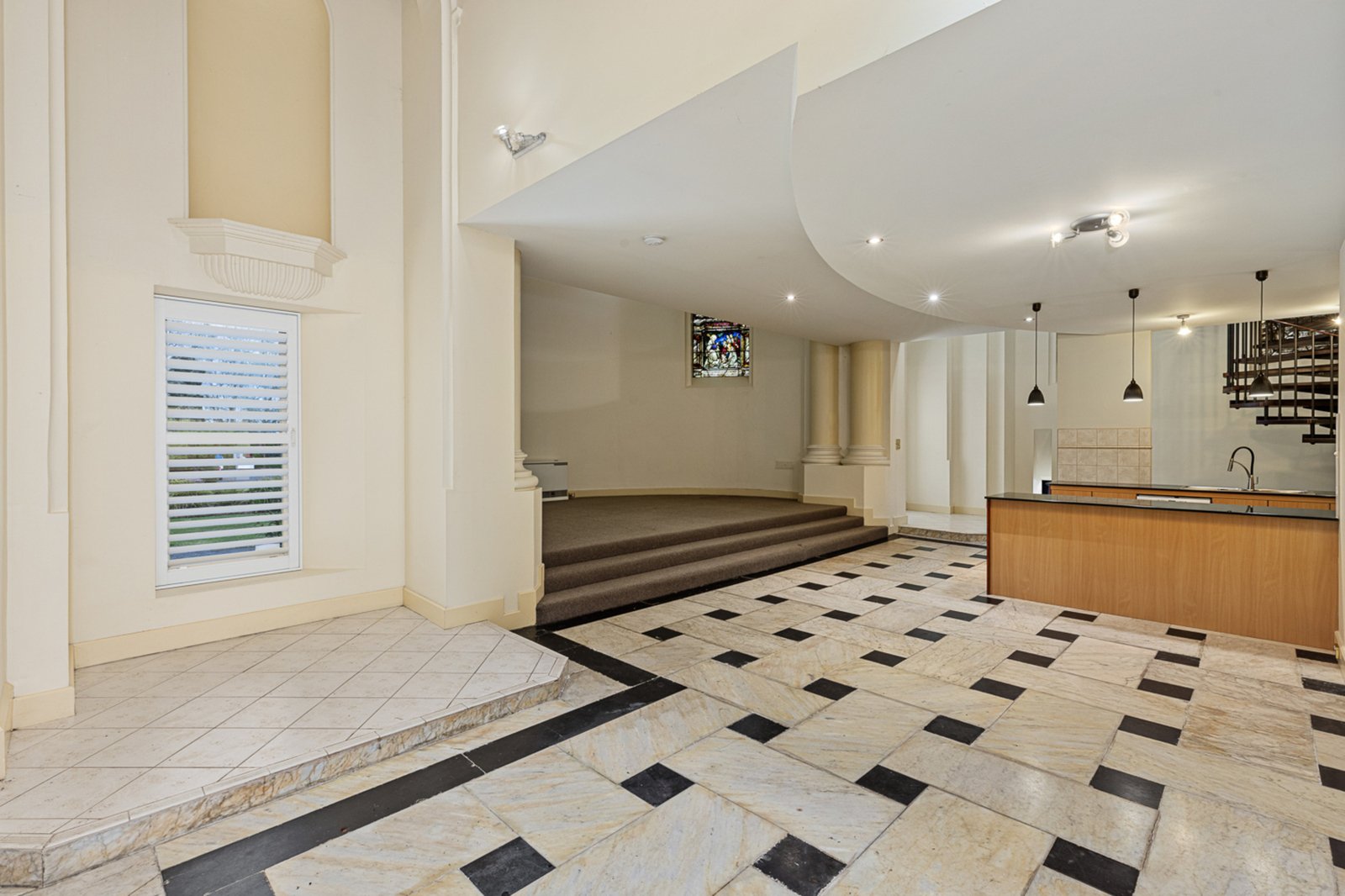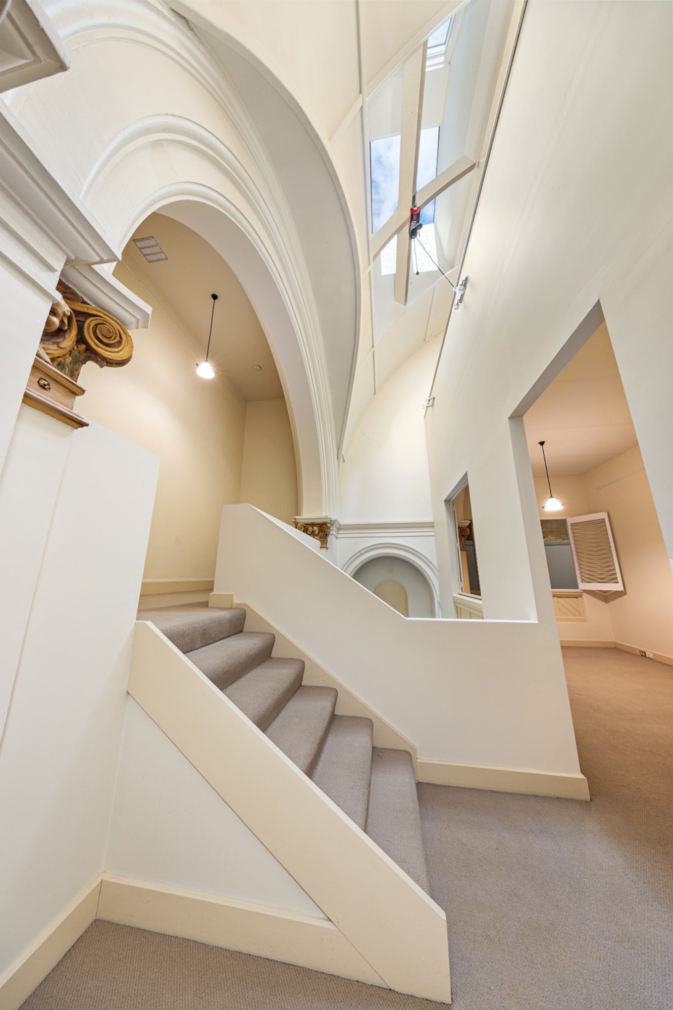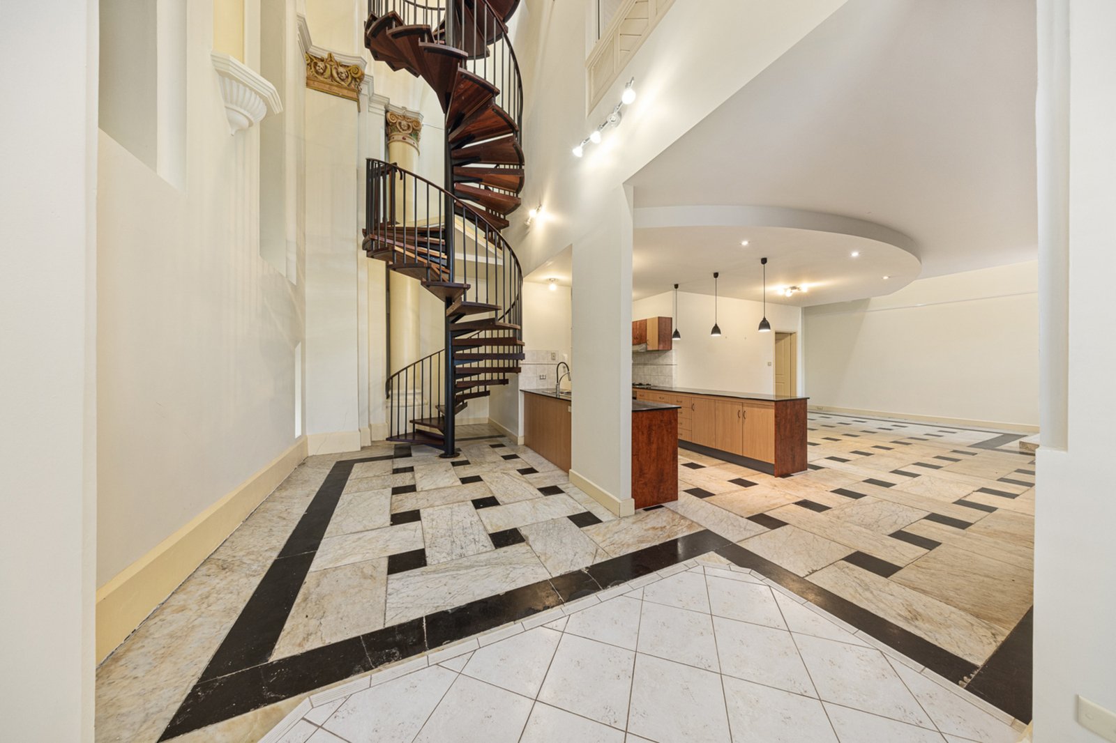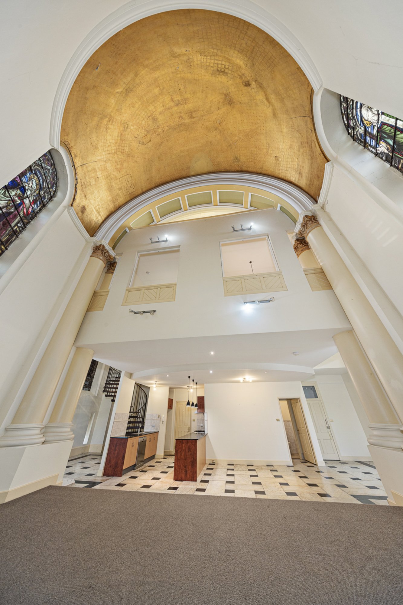 Steeped in history, this landmark building—originally constructed circa 1915 and redeveloped in the early 2000s— the home located at the east end of the original building retains its architectural beauty, from marble flooring and ornate columns to breathtaking hand-painted stained-glass windows and the gold-leaf domed ceiling that define its character.