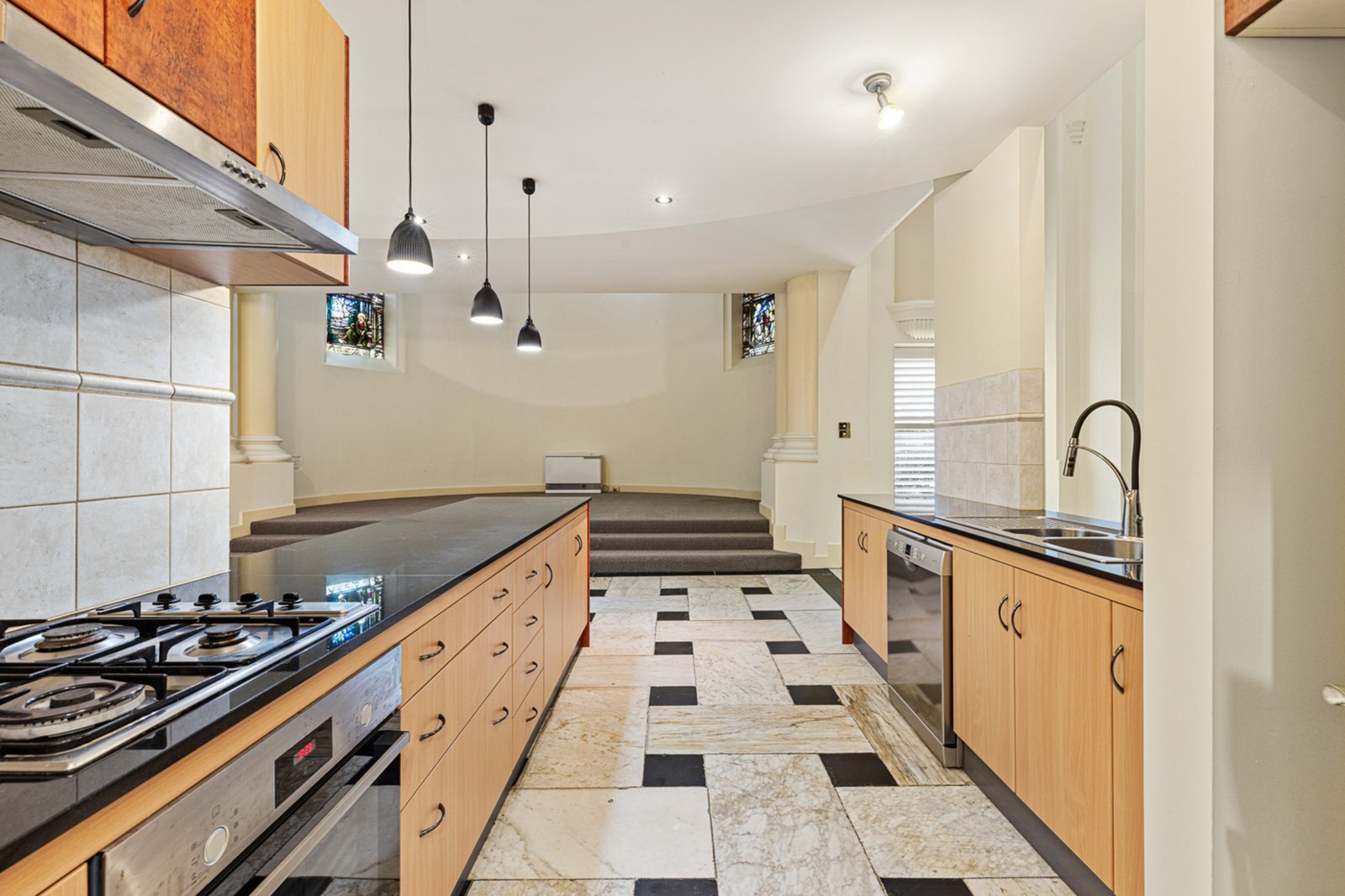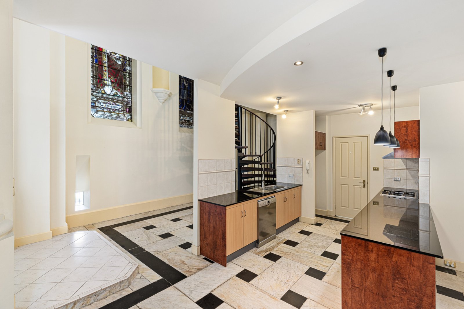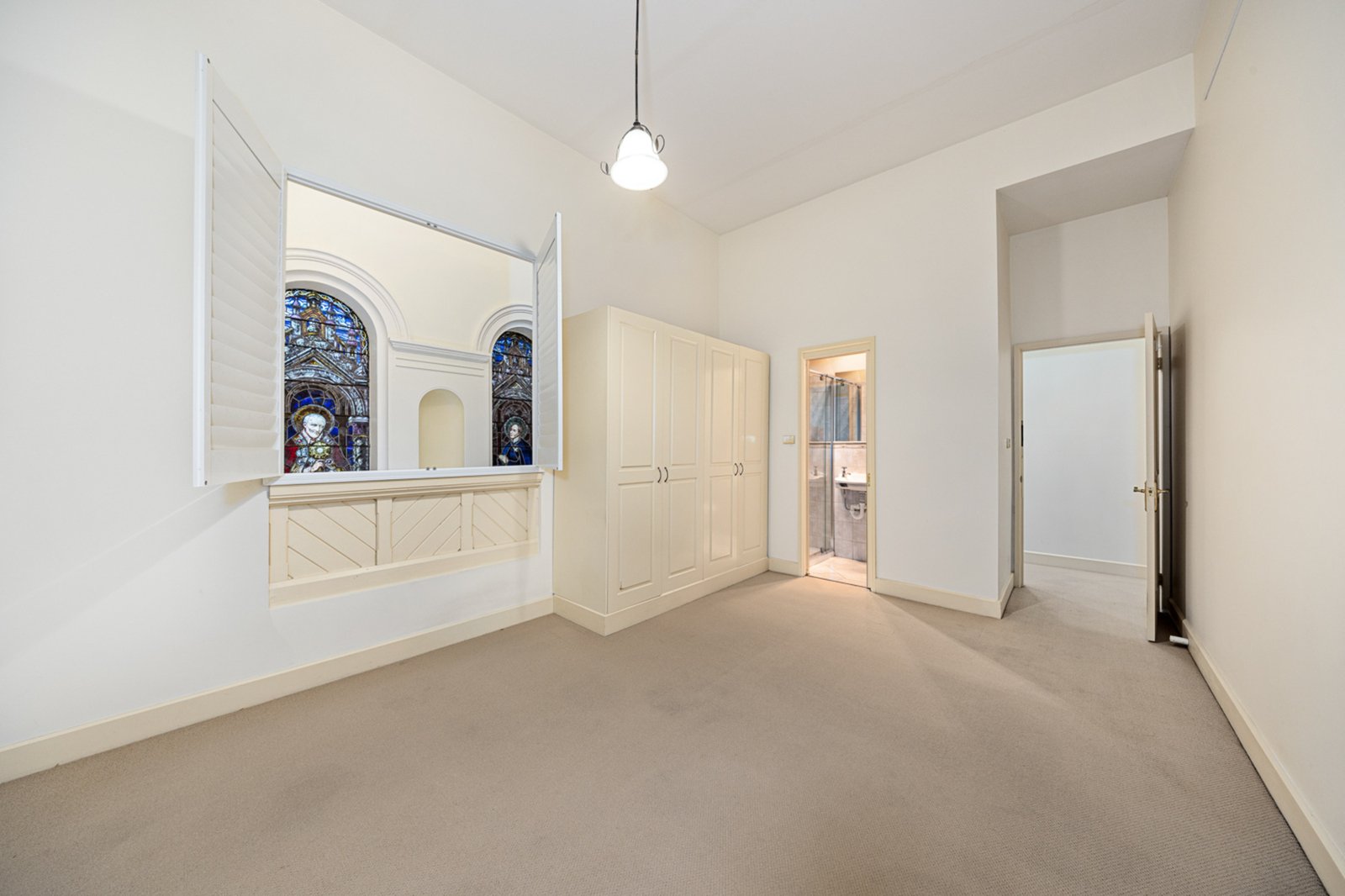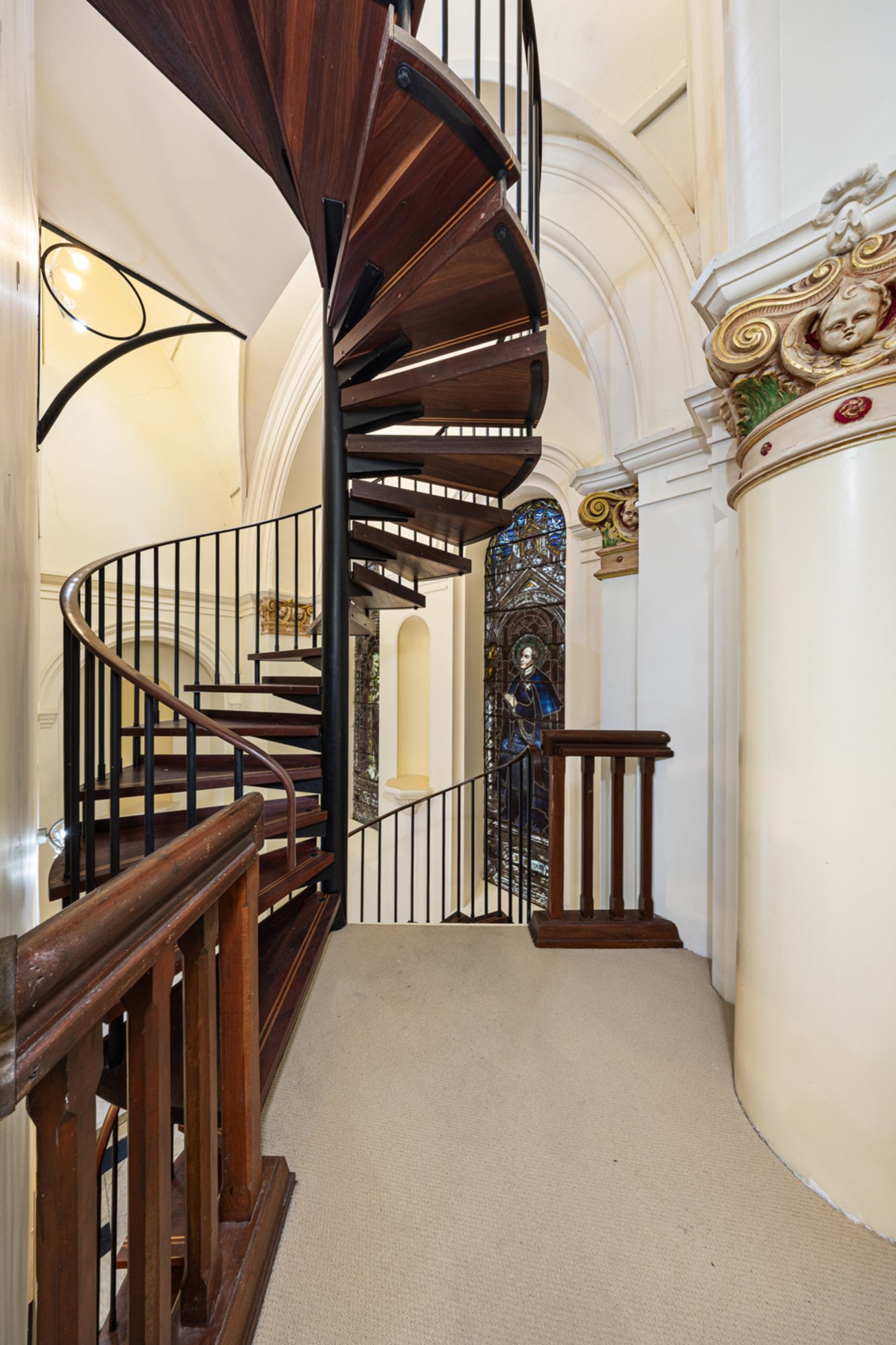 Spread across three impressive levels, the home showcases beautiful period detail blended with modern comfort. Featuring three oversized bedrooms, each with a private ensuite, the design provides space and privacy for every occupant. The main bedroom on the top floor feels truly grand, enhanced by soaring ceilings and a wonderful sense of openness, while a striking spiral staircase links each level with style.