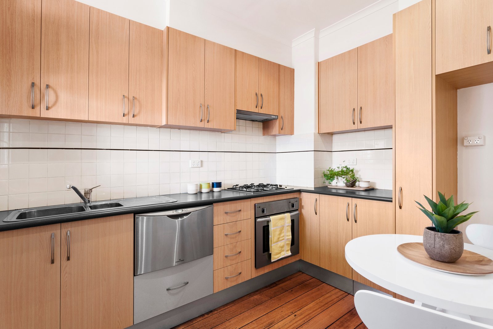 This exquisite period style first floor 2-bedroom apartment with lock up garage is situated in a boutique building of only 8. Comprising a large entry foyer leading to large bright dining/living space, huge master bedroom with floor to ceiling robes, multi-purposed 2nd bedroom with optional hideaway wall bed and wardrobe space, served by a generous bathroom and stylish kitchen with dishwasher and laundry facilities.