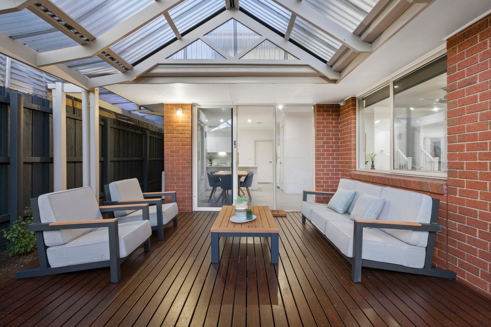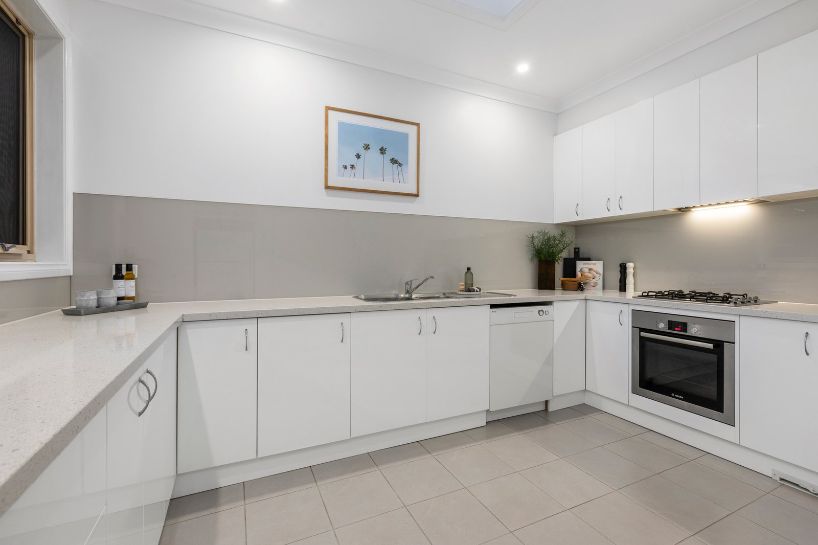 Set amongst leafy gardens, the interiors are filled with light and enhanced by new plush pile carpet. Featuring a spacious living zone leading through to a family-sized dining space, the true highlight is the expansive stone kitchen with a well-placed skylight, quality appliances and plenty of cupboard space including two pantries. Extending the living out into the fresh air, the private alfresco deck sets the scene for summer entertaining and steps down to the easy-care faux grass garden – a raised veggie garden can be planted up to suit your taste.