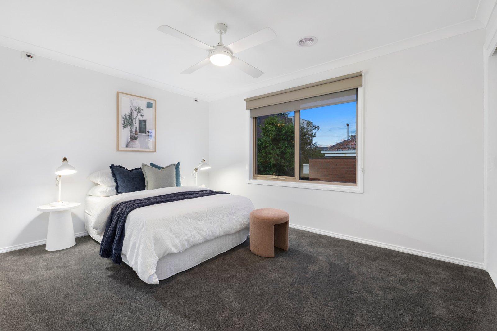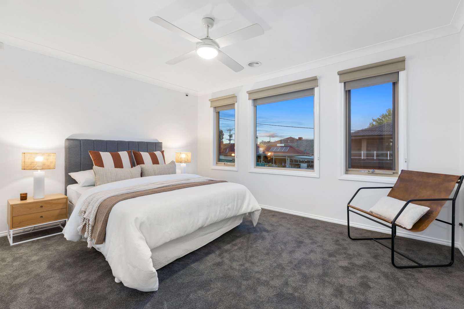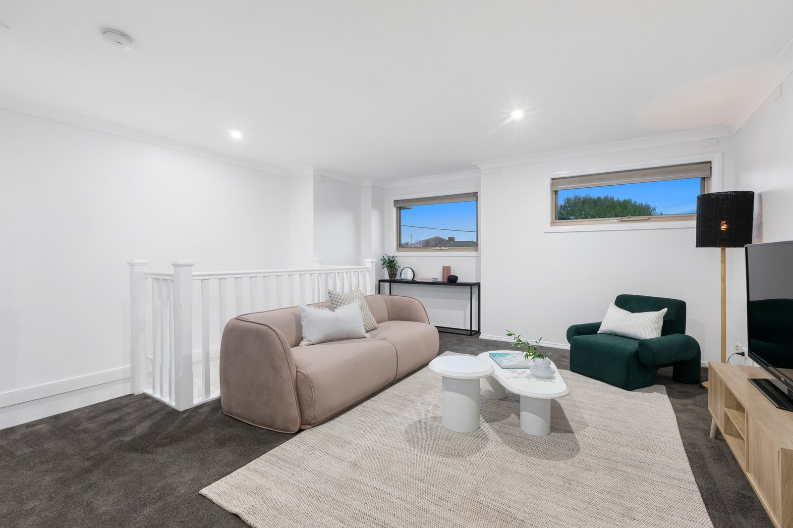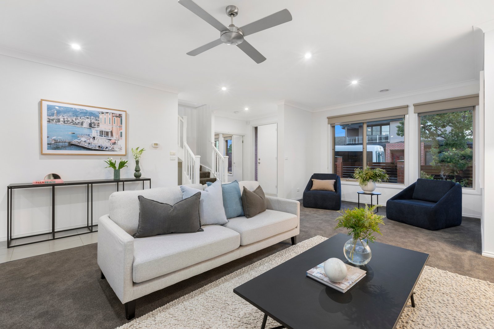 The floorplan ticks the desirable inclusions of a ground-floor ensuite main bedroom offering walk-in robes as well as a valuable second living area on the upper level. Also here are two further double bedrooms (BIRs) serviced by a sparkling bathroom with convenient separate WC. A guests’ powder room and laundry leading to the huge auto garage are added drawcards along with ample storage, ducted heating/vacuum, a split system and additional off-street parking including a gated space suitable for a trailer.