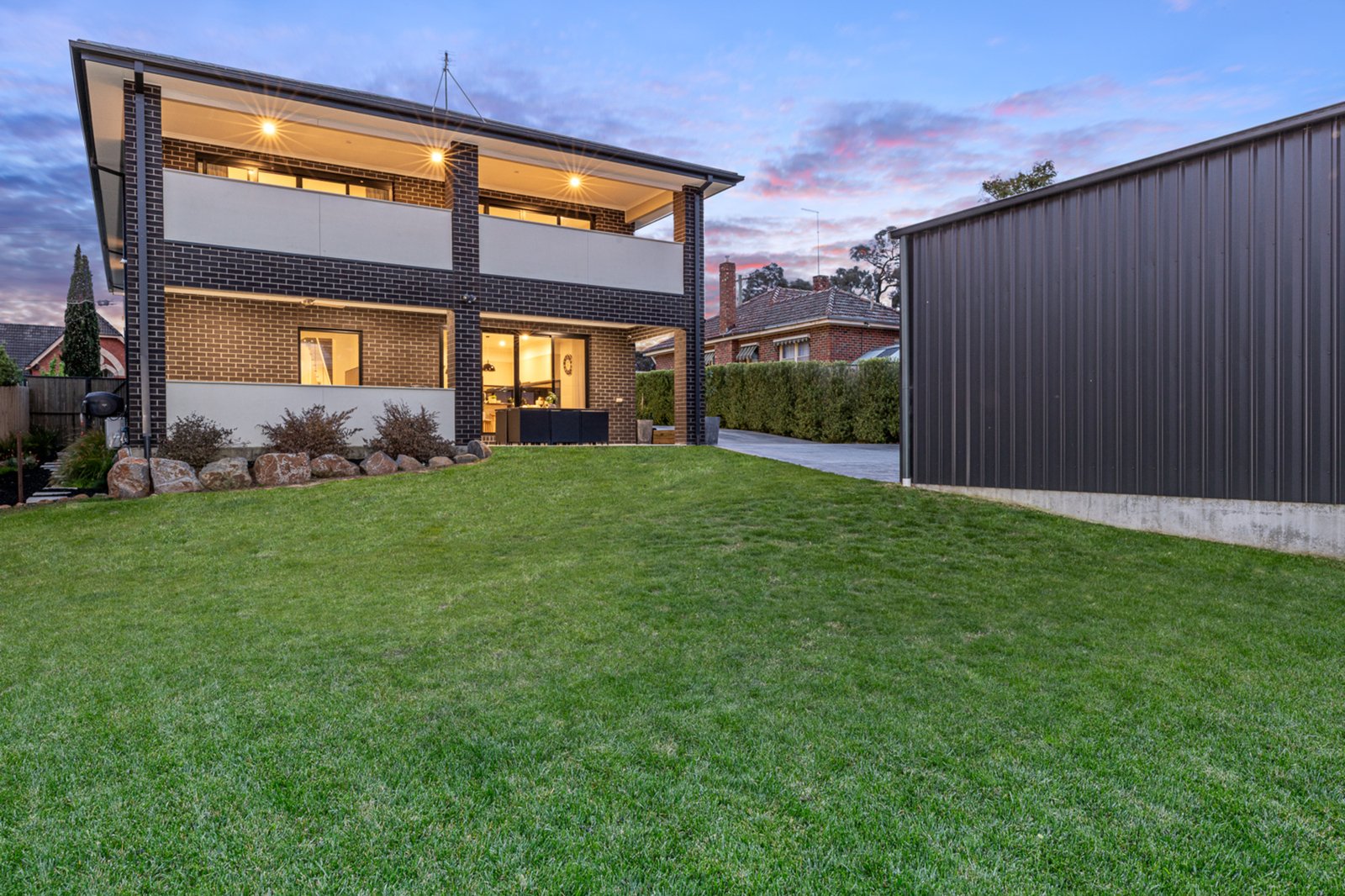 Entertaining is effortless with an undercover alfresco downstairs and the upstairs balcony with ceiling speakers, while landscaped gardens surround the property. Vehicle access is excellent, with a wide driveway and side access, a brilliant 9m x 10m shed with 3.1m high roller doors and LED lighting, so suitable for your caravan, boat or additional vehicles. Plus, the double garage with direct internal access. Heavy-duty hardwood retaining walls complete the exterior.