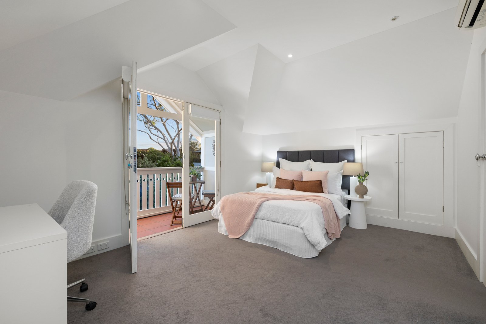 Five bedrooms and three bathrooms can be found across the home’s two sun-swept levels. The ground floor primary suite with ensuite and walk-in robe is a warm & inviting retreat, while little princes and princesses will simply love the fifth bedroom with towering fairytale turret.
