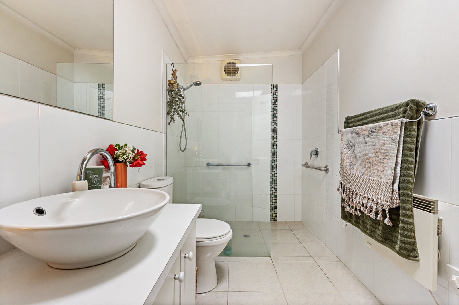 The home offers three well-proportioned bedrooms—two with built-in robes—or the option to use one as a second living space, depending on your needs. The central bathroom is neat and practical, featuring a shower, vanity, and toilet. Comfort is assured year-round with gas central heating and a split system air-conditioner.