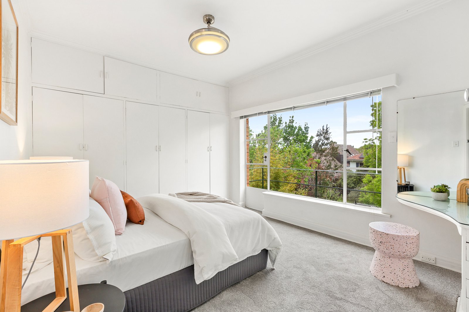 In an exclusive heritage enclave just footsteps from Lumley Gardens, this Art Deco apartment’s stylishly renovated generous proportions are a rare inner city offering indeed! Awash with natural light and leafy surrounding outlooks, exceptional half-floor accommodation not only includes three spacious bedrooms, two separate living areas, two balconies and a fully renovated kitchen and bathroom, it enjoys them in a peaceful, private top-floor position.